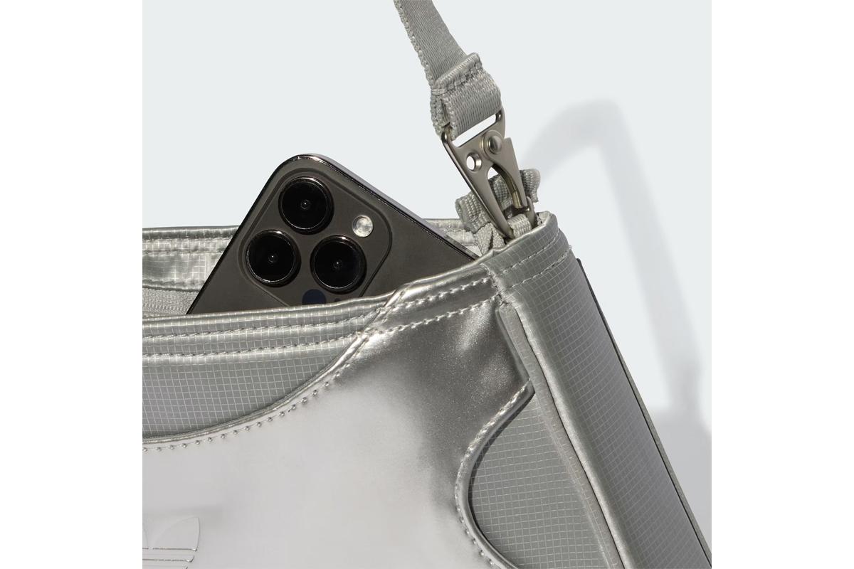 Η Adidas Originals Clutch τσάντα ώμου - χειρός σε ασημί χρώμα συνδυάζει κομψότητα και λειτουργικότητα, προσφέροντάς σου μια ευέλικτη επιλογή για καθημερινή χρήση ή ιδιαίτερες εμφανίσεις.