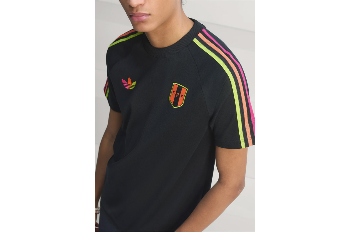 Τα χρώματα και οι λεπτομέρειες εμπνευσμένες από τη φανέλα εκτός έδρας του Περού δημιουργούν ένα δυναμικό look, ενώ το χαρακτηριστικό λογότυπο adidas Originals ενισχύει την αυθεντικότητα του design.