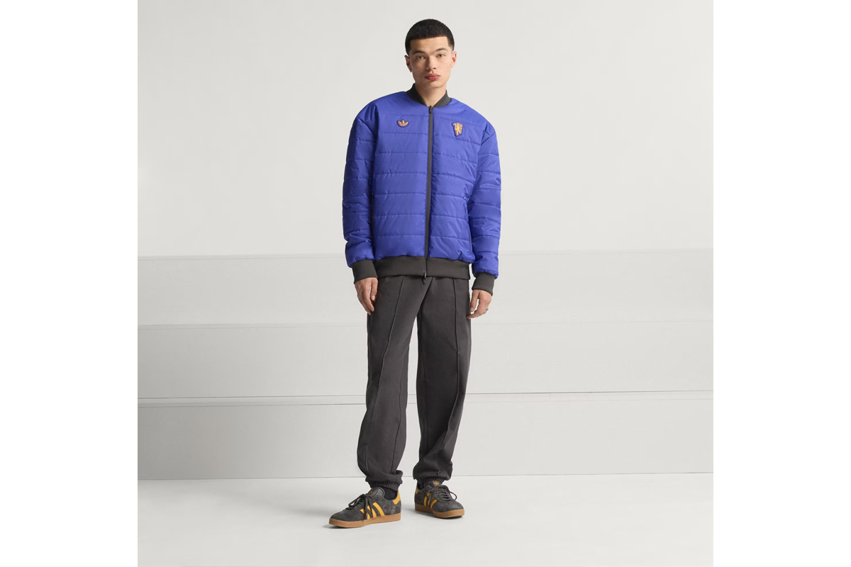 Η Adidas Originals Manchester United Icons ανδρικό μπουφάν bomber σε ανθρακί και χρυσό χρώμα συνδυάζει vintage στυλ και σύγχρονη άνεση για καθημερινή χρήση.