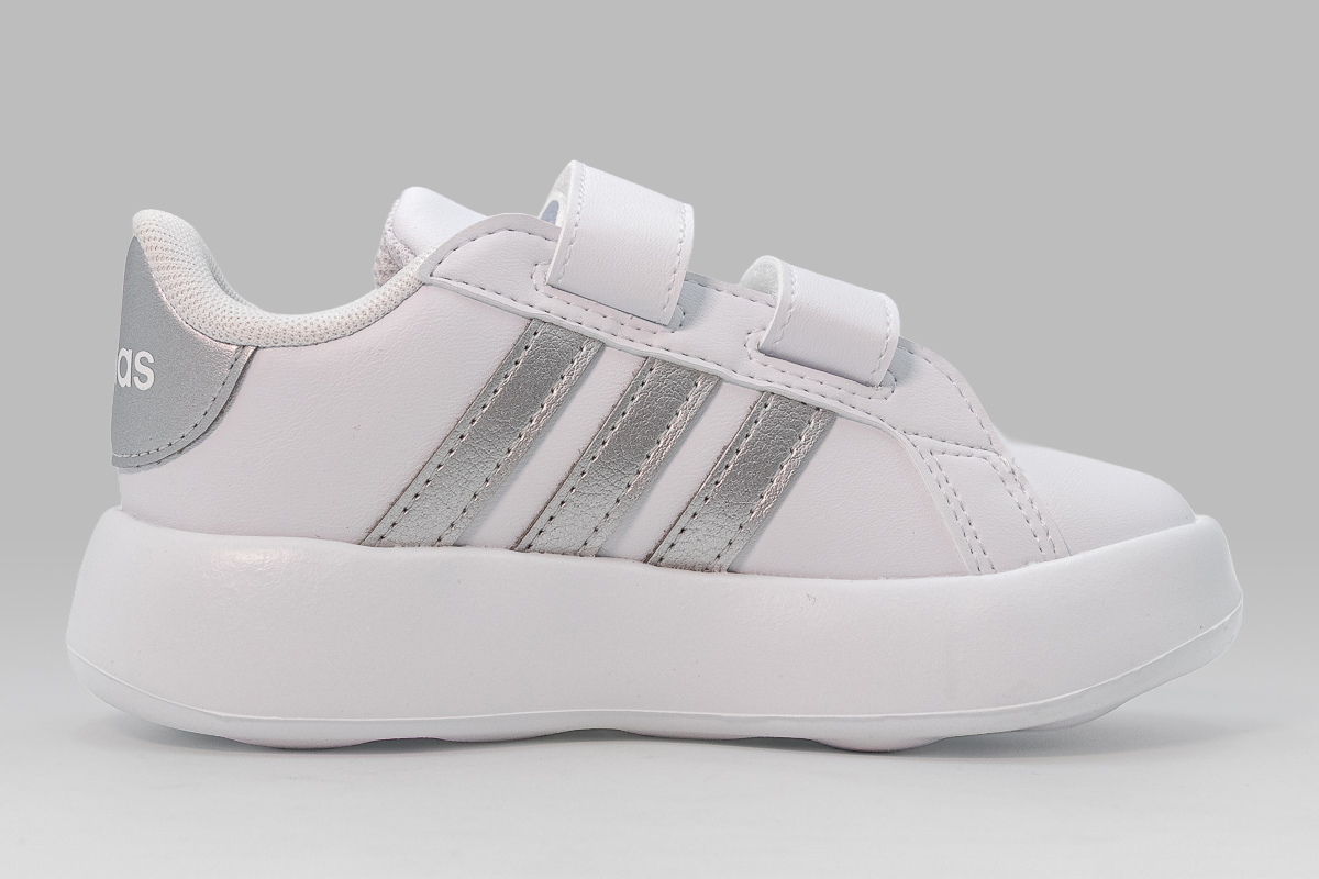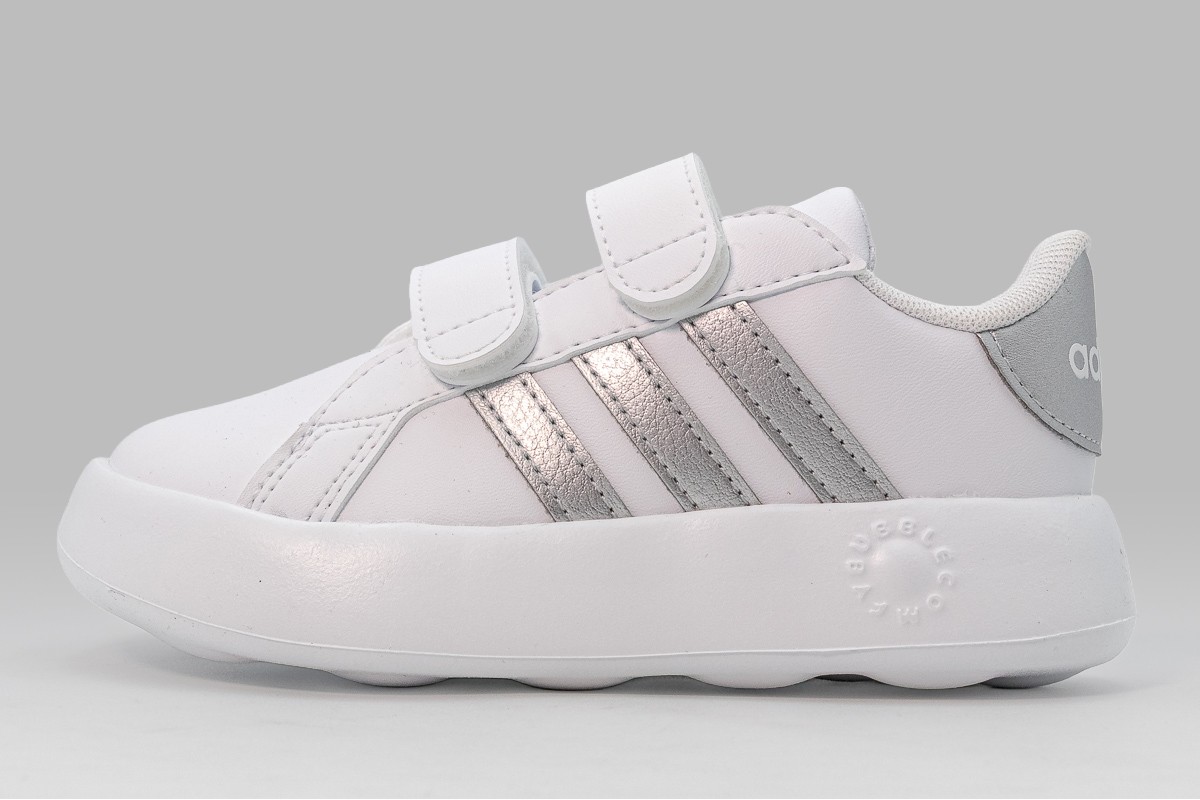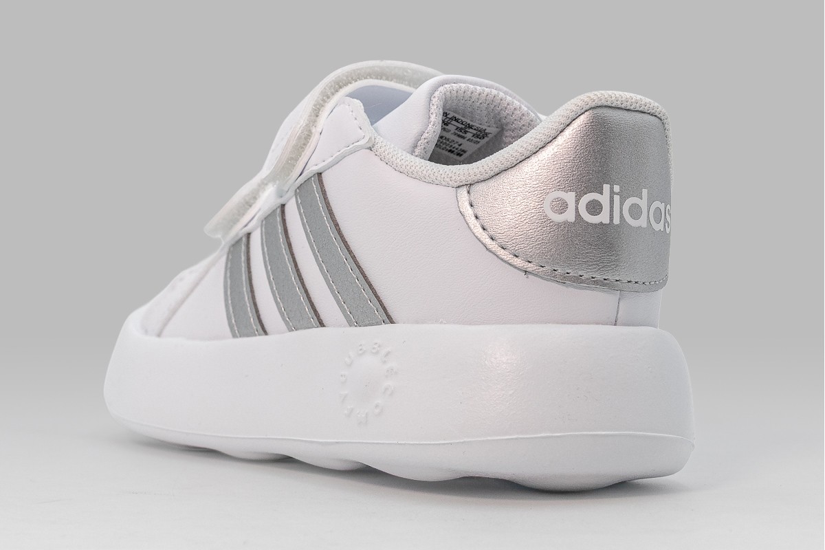 Tα Adidas Performance Grand Court 2.0 βρεφικά sneakers σε λευκό και ασημί χρώμα είναι σχεδιασμένα για να συνοδεύουν το παιδί σου στα πρώτα του βήματα, με στήριξη και ευκολία.