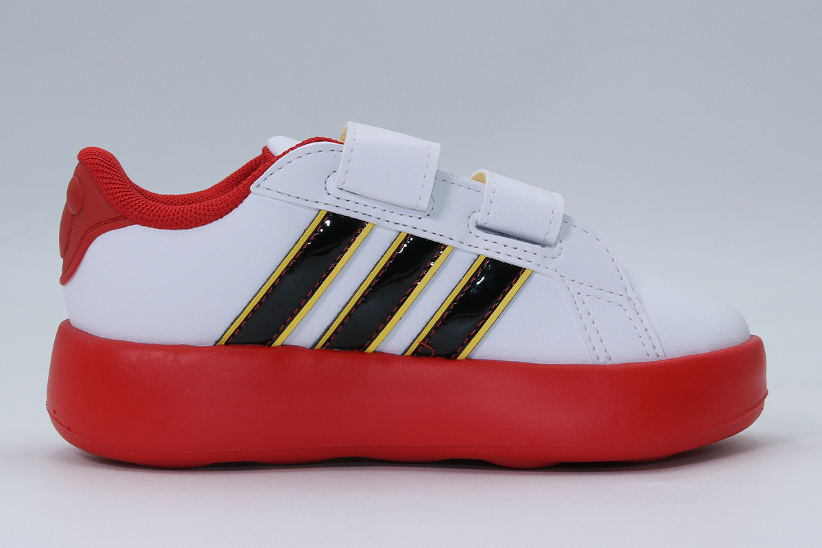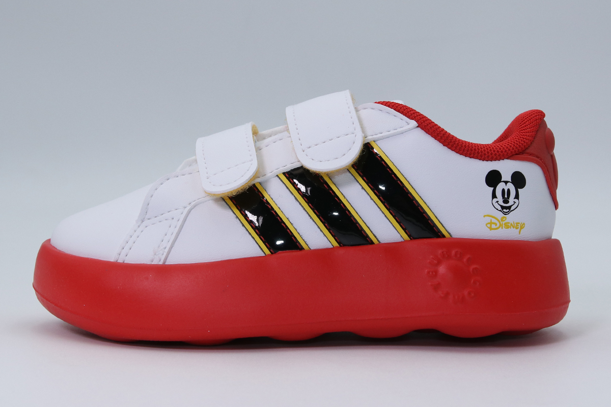 Κάνε τα πρώτα βήματα του μικρού σου πιο μαγικά με τα Adidas Performance x Disney Mickey Mouse Grand Court βρεφικά sneakersσε λευκό και κόκκινο χρώμα.