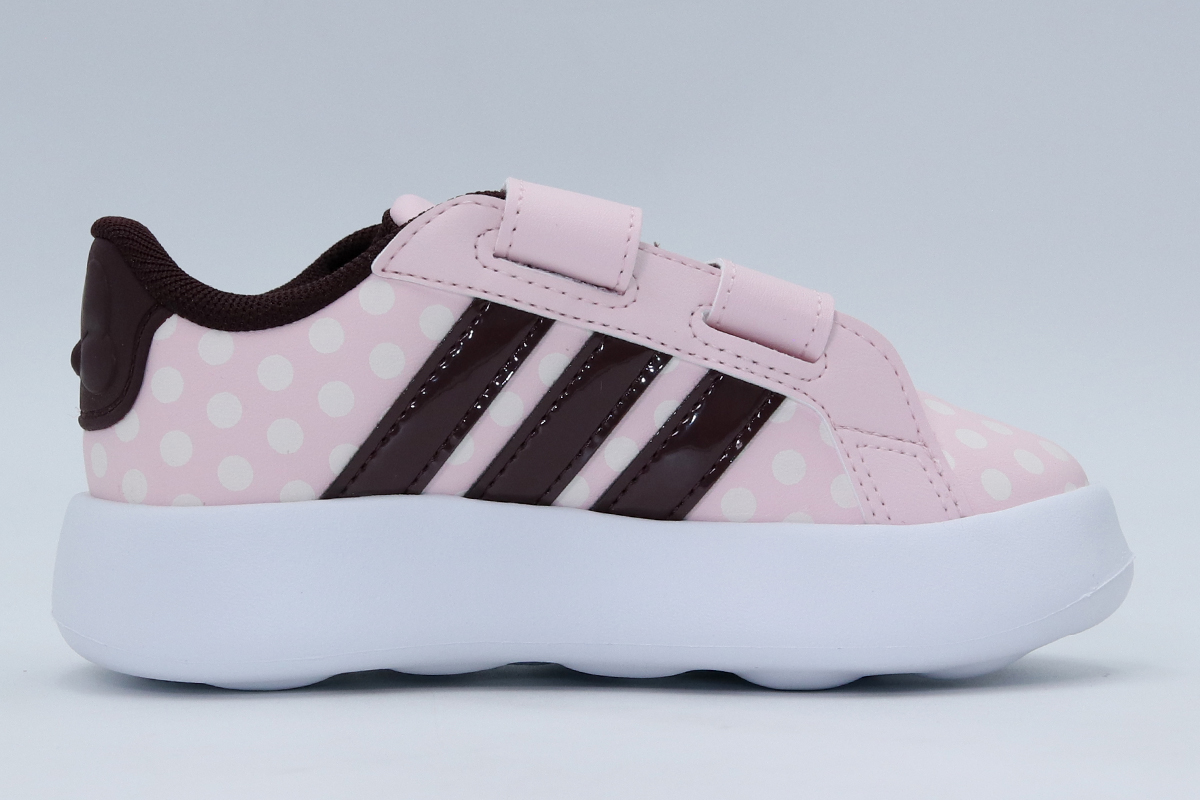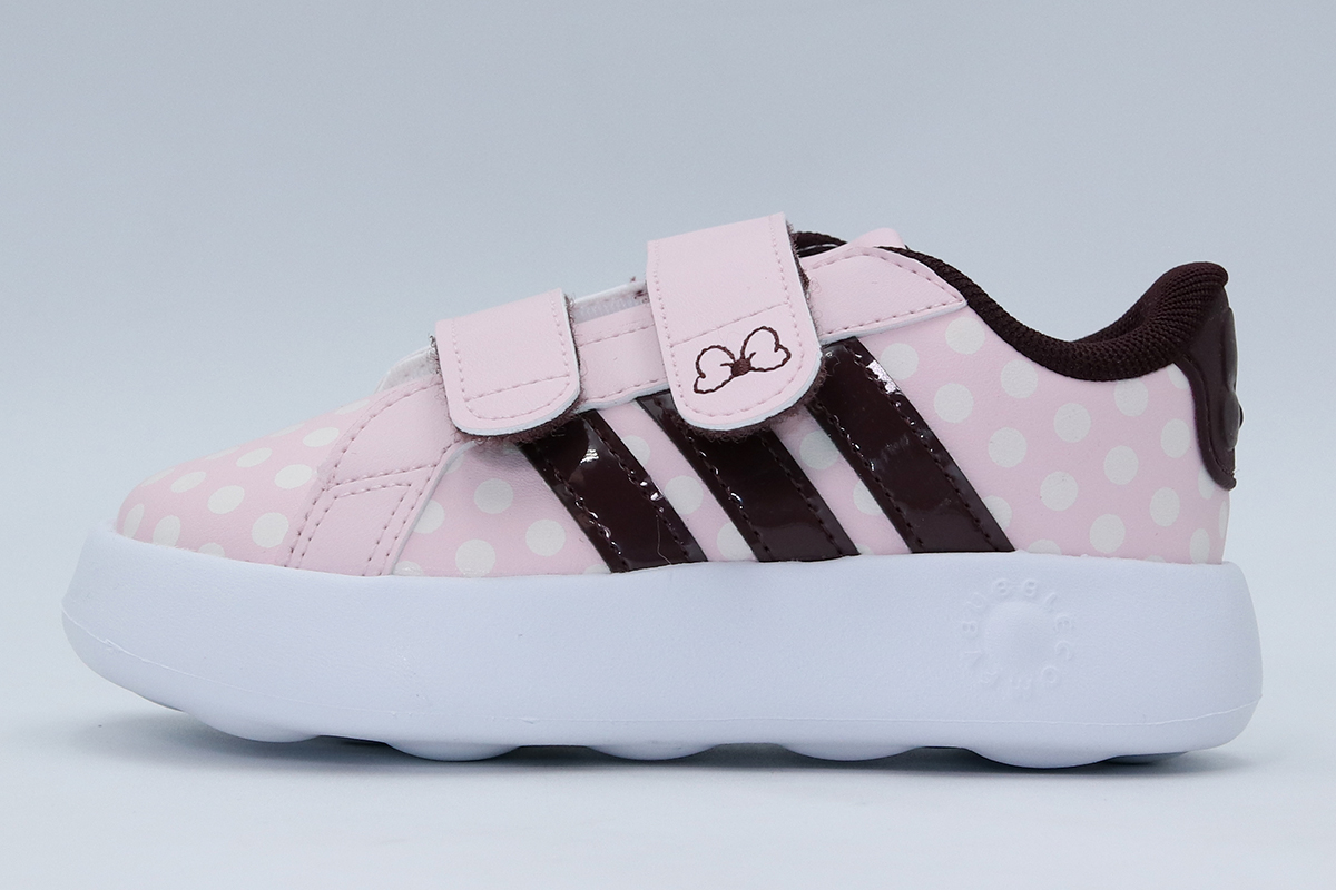 Τα Adidas Performance x Disney Minnie Mouse Grand Court βρεφικά sneakers σε ροζ, μπορντό και λευκό χρώμα είναι η τέλεια επιλογή για να συνοδεύσουν τα πρώτα βήματα του μικρού σου με άνεση, στήριξη και παιχνιδιάρικο στυλ.