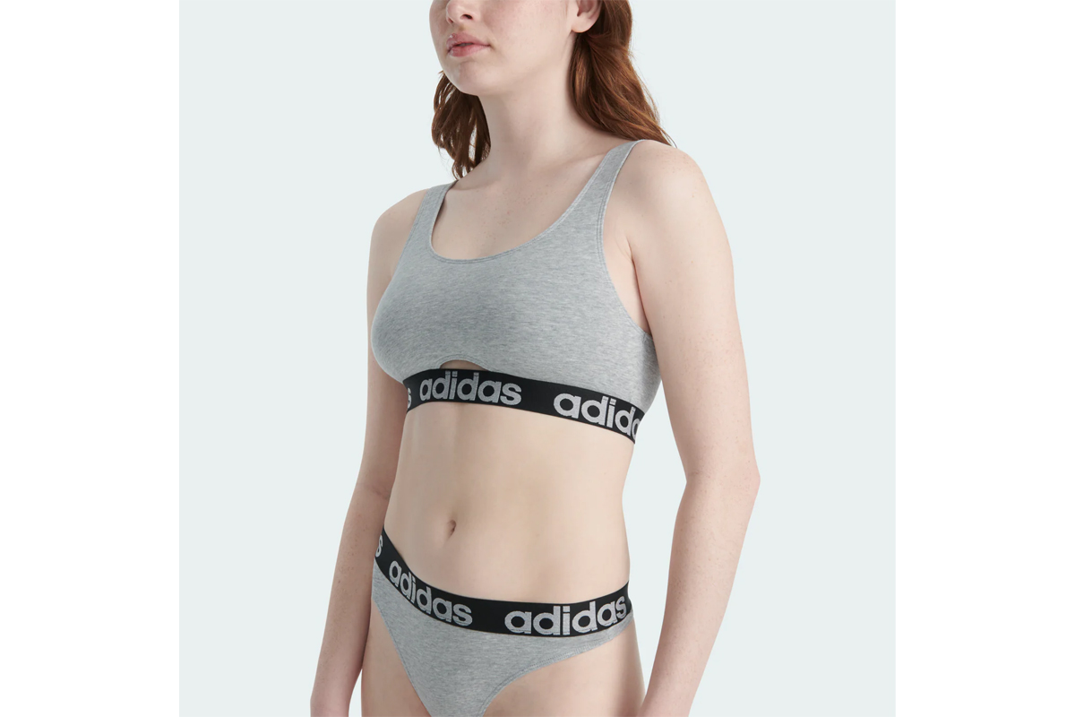 Το μαύρολάστιχο με το λογότυπο της Adidas Performance κάτω από το στήθος προσθέτει έναν αθλητικό χαρακτήρα στο bralette.