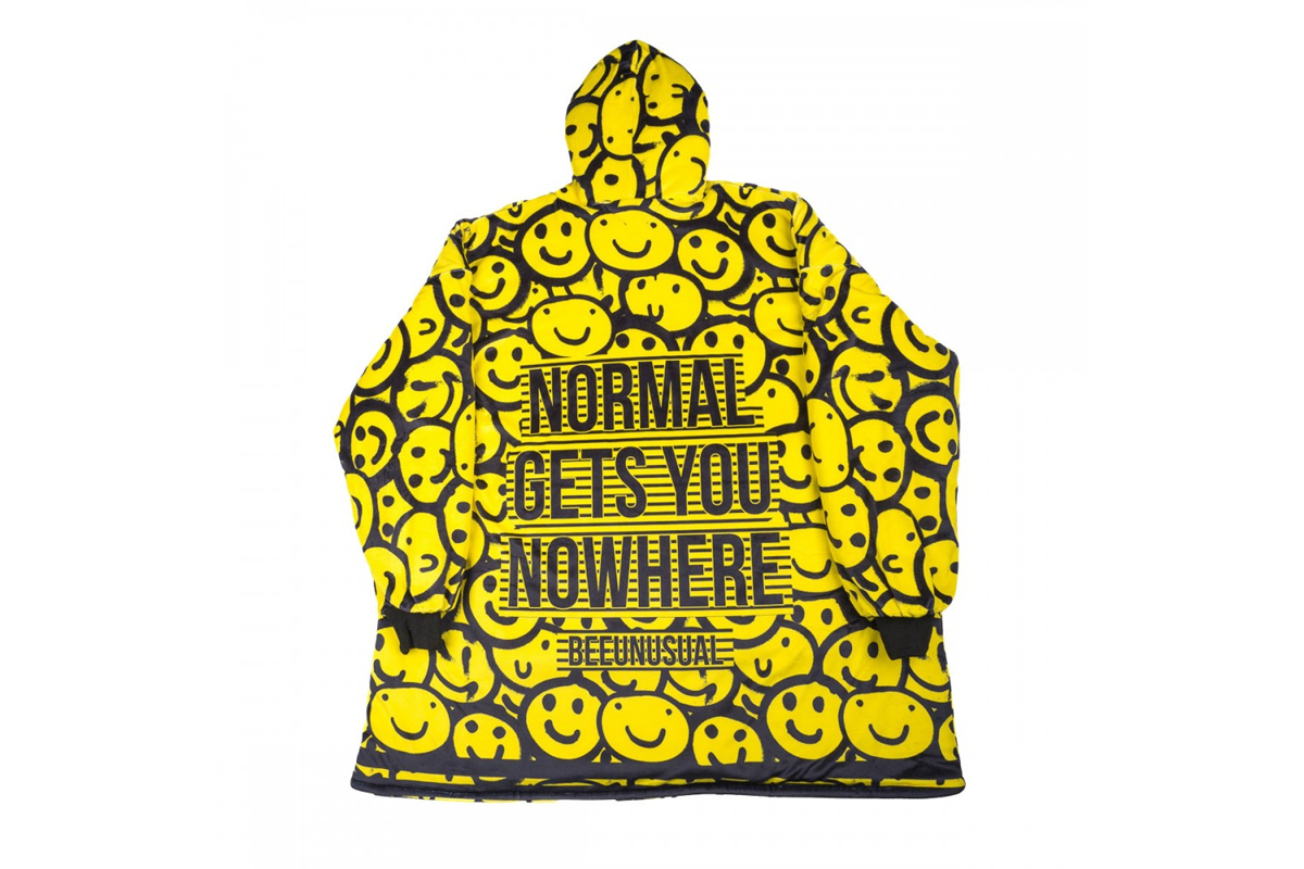 Αν σου αρέσει να ξεχωρίζεις και να συνδυάζεις άνεση, fun διάθεση και pop αισθητική, τότε το Bee Unusual “Bee Fxxxing Unusual” poncho είναι φτιαγμένο για εσένα.