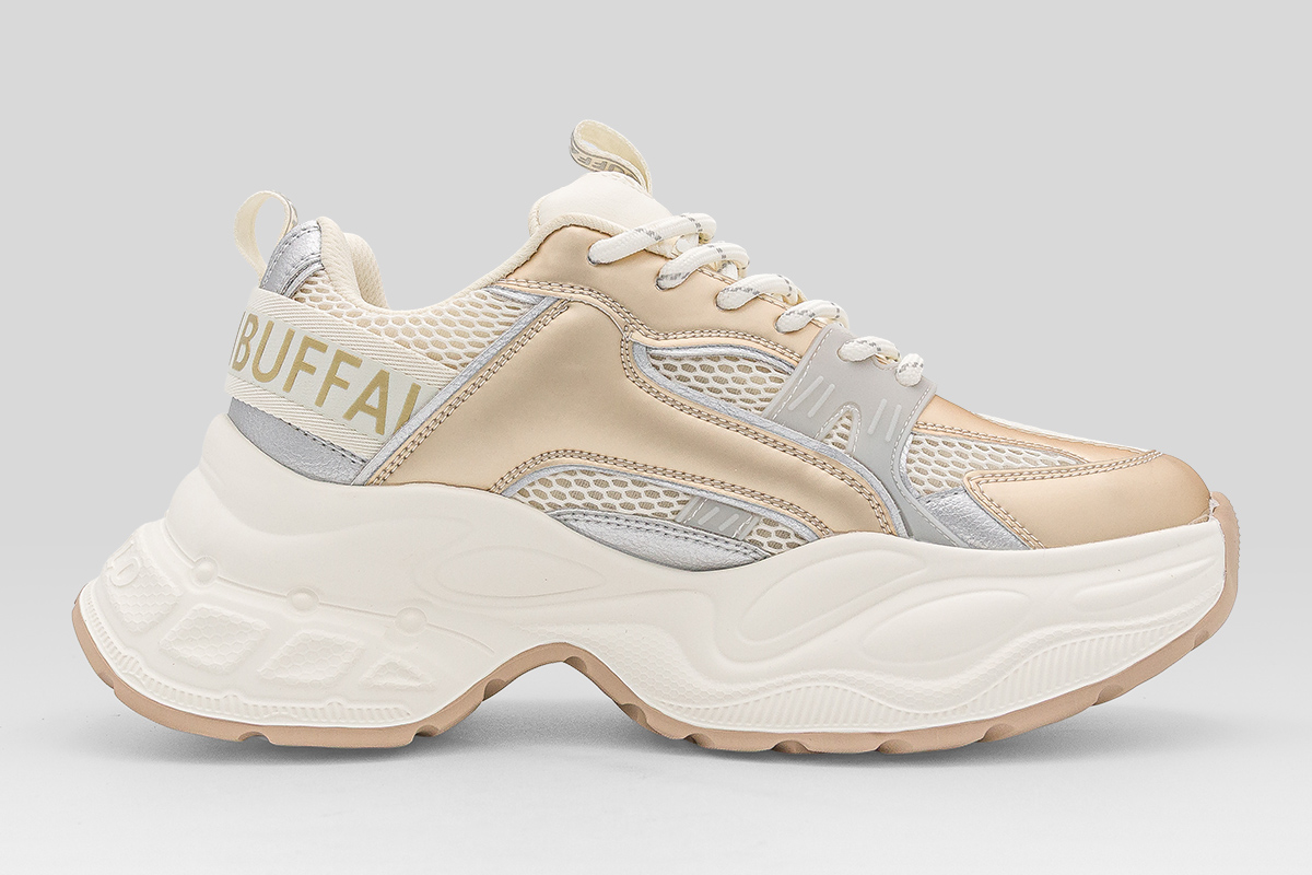Τα Buffalo Yuno One sneakers σε εκρού, χρυσό και ασημί χρώμα είναι η ιδανική επιλογή για να απογειώσεις το καθημερινό σου στυλ με ένα δυναμικό, σύγχρονο και απόλυτα μοντέρνο chunky design.