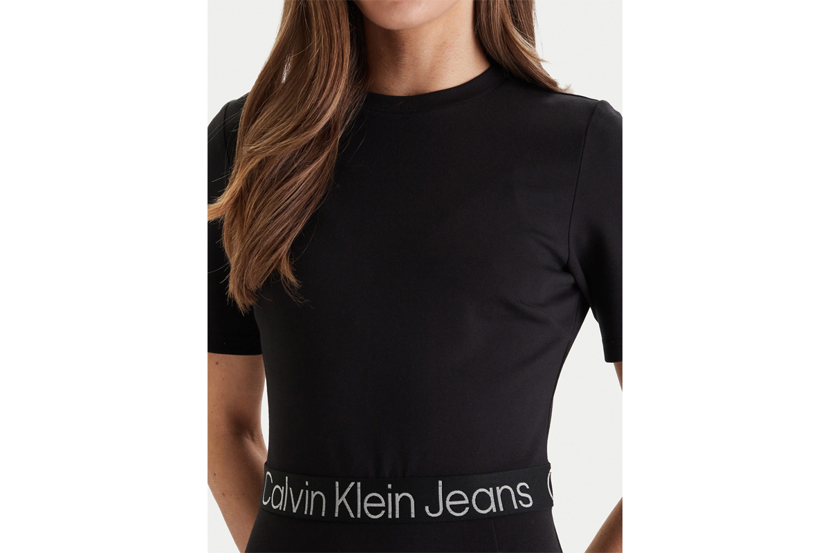 Η στρογγυλή λαιμόκοψη και τα κοντά μανίκια δημιουργούν καθαρές και κομψές γραμμές, ενώ το διακριτικό λογότυπο Calvin Klein Jeans στη μέση ολοκληρώνει το μίνιμαλ στυλ.