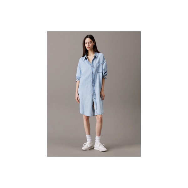 Calvin Klein Γυναικείο Τζιν Φόρεμα Πουκαμίσα με Ζώνη Μπλε