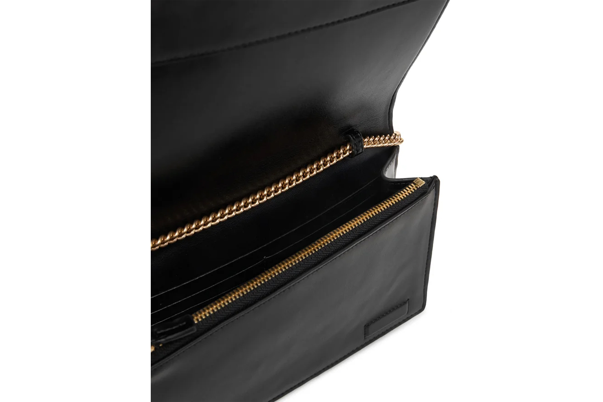 Το εσωτερικό διαθέτει τσέπη με φερμουάρ για ασφαλή φύλαξη μικροαντικειμένων, θήκη για χαρτονομίσματα και πολλαπλές θήκες για κάρτες, καθιστώντας το εξαιρετικά λειτουργικό για καθημερινή χρήση, έξοδοι ή ταξίδια.