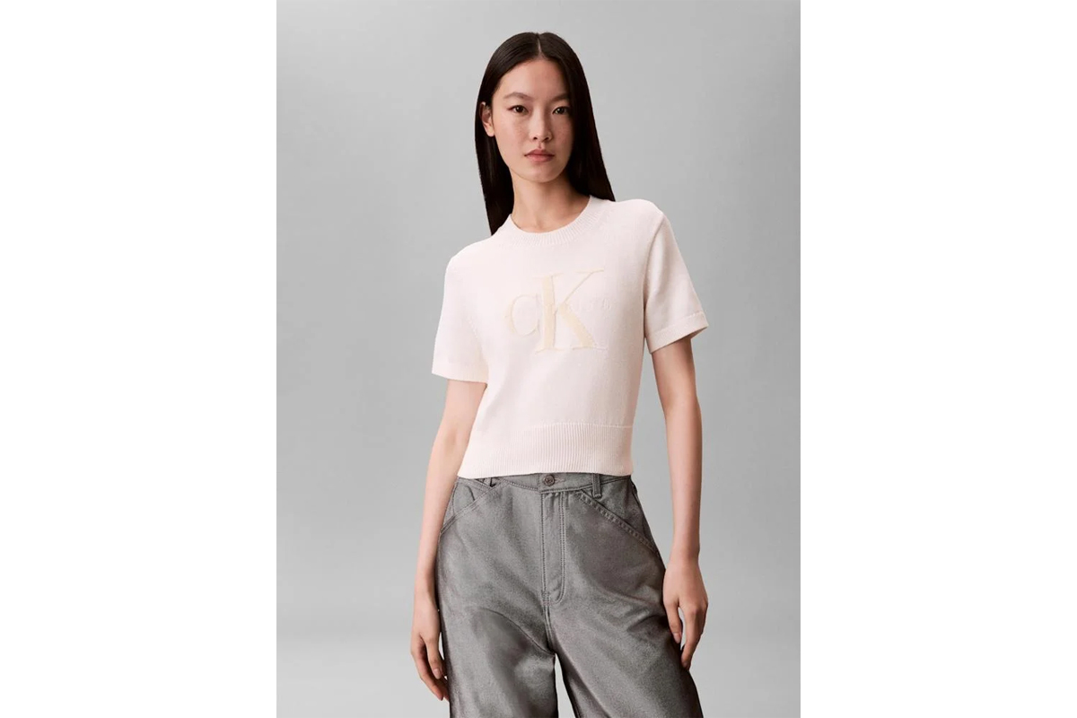 NEW IN! Calvin Klein Monologo Cropped Πουλόβερ Κοντομάνικο Γυναικείο (LV044E306G YBH)