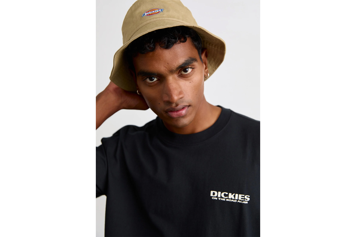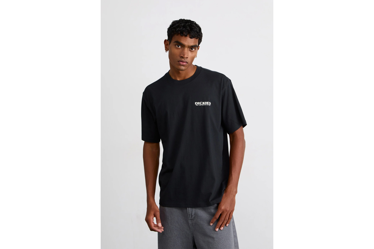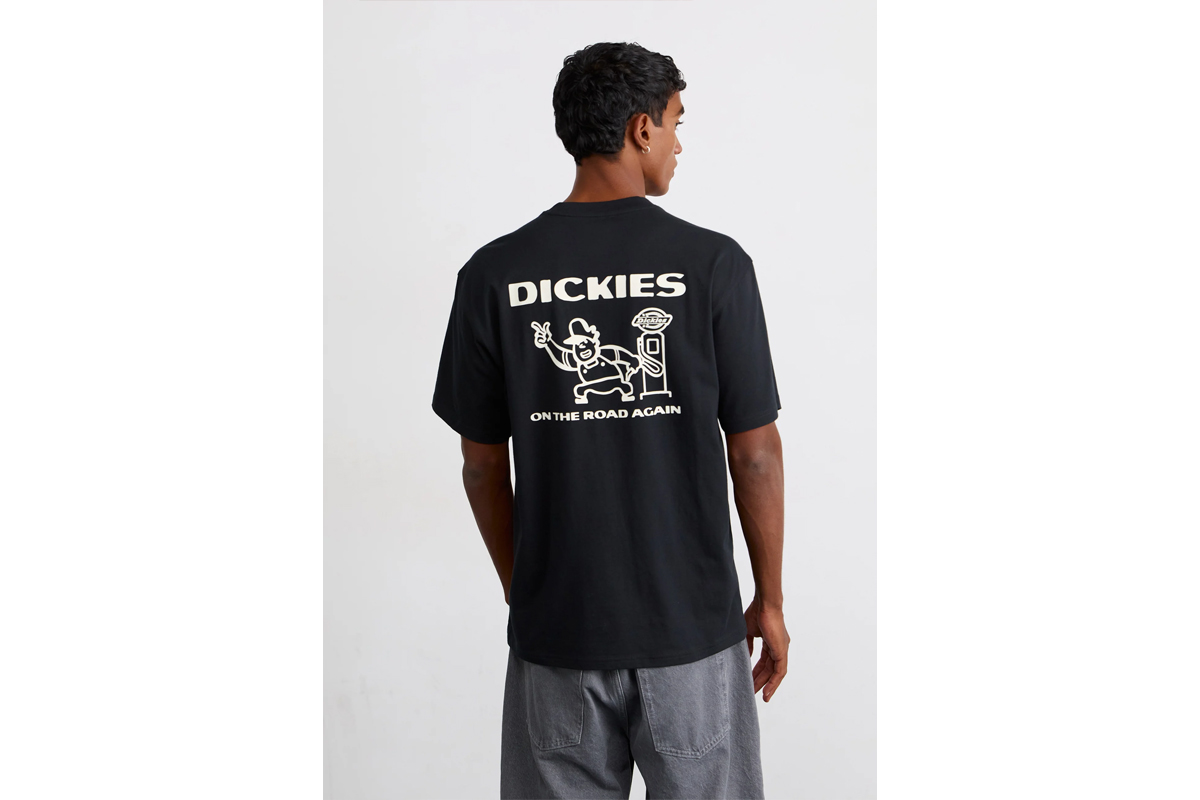 Τα μοναδικά γραφικά της Dickiesπροσθέτουν χαρακτήρα στο μπλουζάκι, ένα μικρό print “Dickies on the road again” στο αριστερό στήθος και ένα μεγάλο αντίστοιχο σχέδιο στην πλάτη, ενώ η στρογγυλή λαιμόκοψη και το ίσιο τελείωμα ολοκληρώνουν την κλασική του αισθητική.