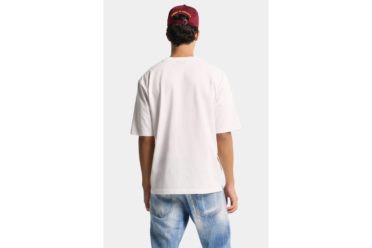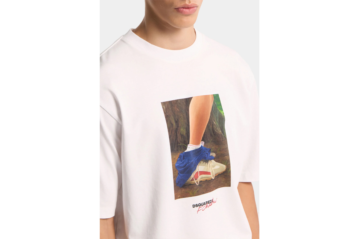 Αναβάθμισε το casual στυλ σου με αυτό το μοναδικό ανδρικό κοντομάνικο T-shirt της Dsquared2, σε συνεργασία με τον καλλιτέχνη Felix Chesher.