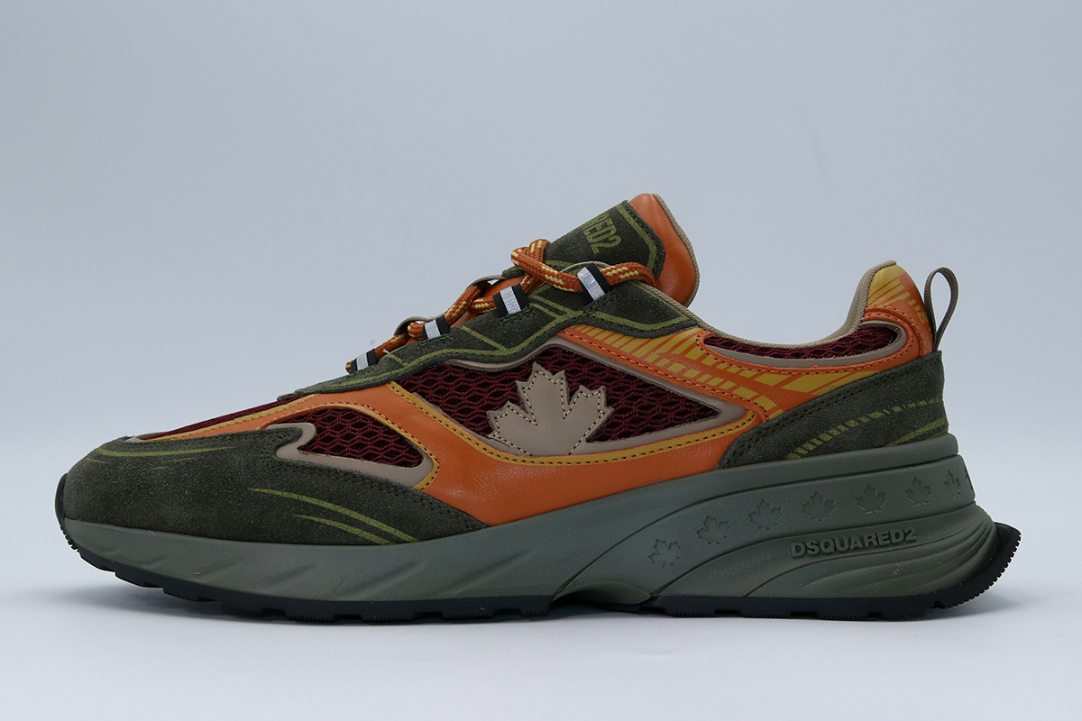 Αναβάθμισε το καθημερινό σου look με τα Dsquared2 Sprinter ανδρικά σνίκερς σε χακί, πορτοκαλί και βυσσινί χρώμα.