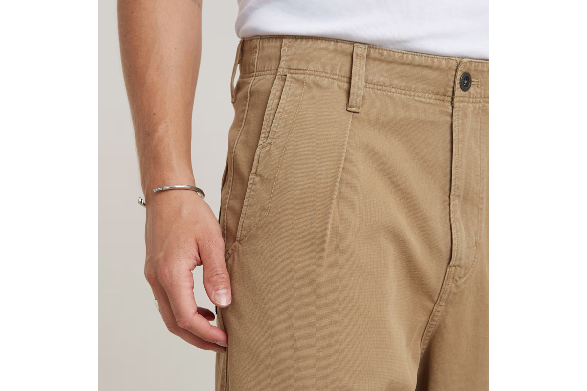 Το G-Star Pleated ανδρικό chino παντελόνι σε μπεζ χρώμα αποτελεί μια διαχρονική και στυλάτη επιλογή για την καθημερινή σου γκαρνταρόμπα.