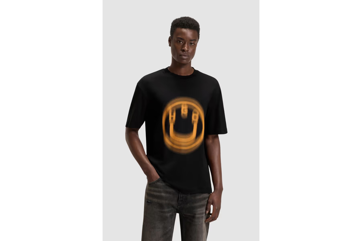Το Hugo Nalax With Blurred Logo Print ανδρικό κοντομάνικο T-Shirtσε μαύρο και μουσταρδί χρώμα αποτελεί μια μοντέρνα πρόταση που ξεχωρίζει για τον minimal αλλά ταυτόχρονα τολμηρό χαρακτήρα του.