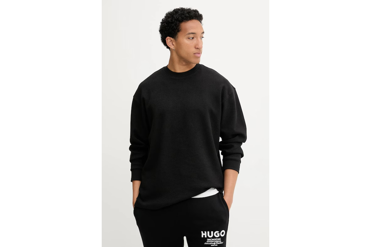 Αναβάθμισε το καθημερινό σου ντύσιμο με τη Hugo Nuwolo Waffle ανδρική μακρυμάνικη μπλούζα σε μαύρο χρώμα, ένα κομμάτι που συνδυάζει άνεση, ποιότητα και διακριτική κομψότητα.
