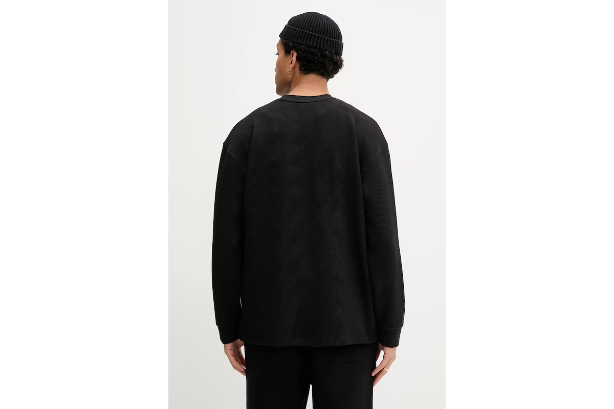 Hugo Nuwolo Waffle Ανδρική Μακρυμάνικη Μπλούζα Μαύρη