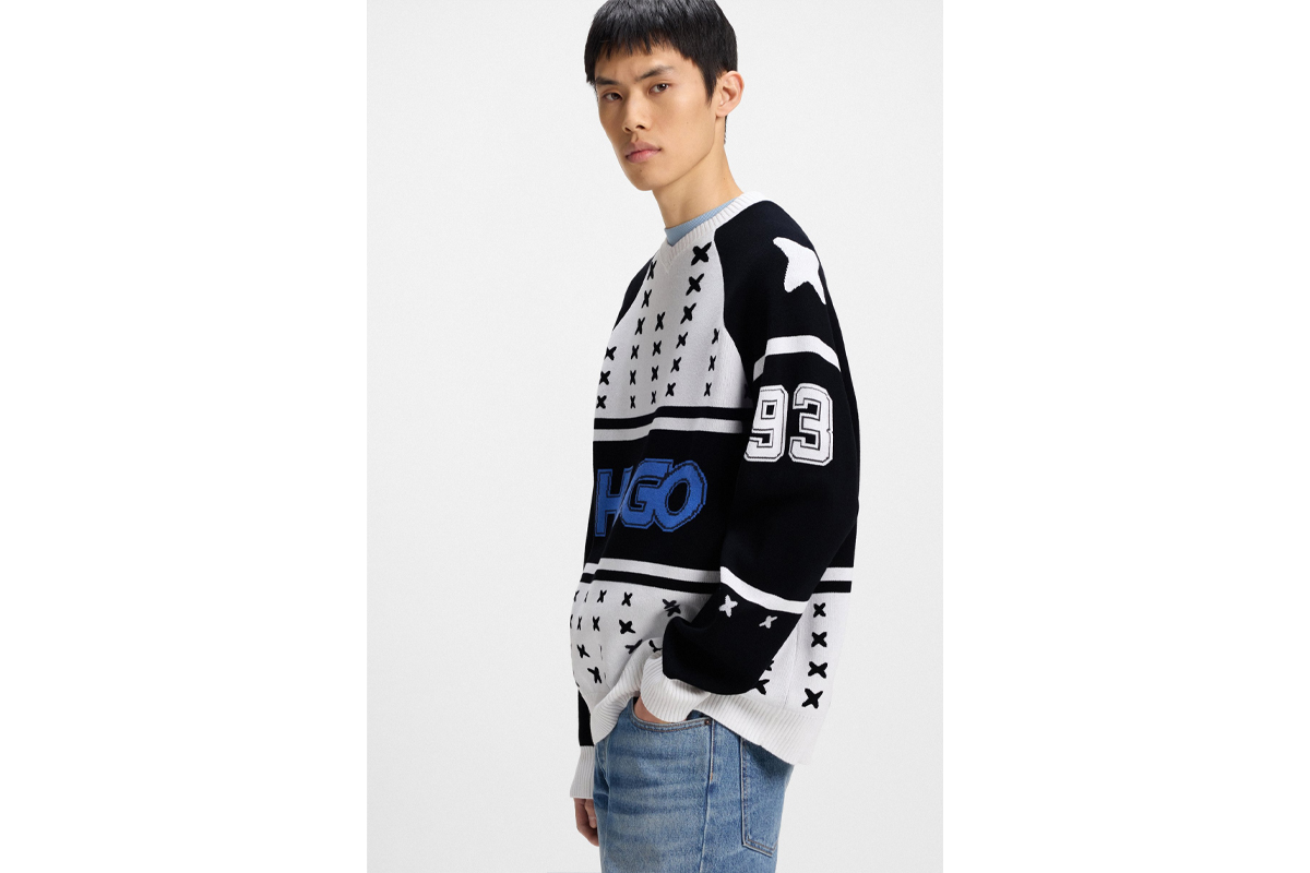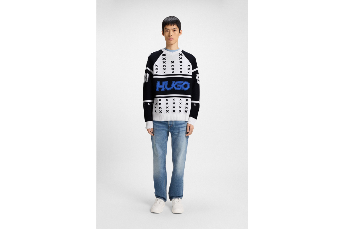 Εμπνευσμένο από το στυλ του ice hockey, αυτό το Hugo πουλόβερ δίνει ένα fashion-forward αποτέλεσμα που δεν περνά απαρατήρητο.