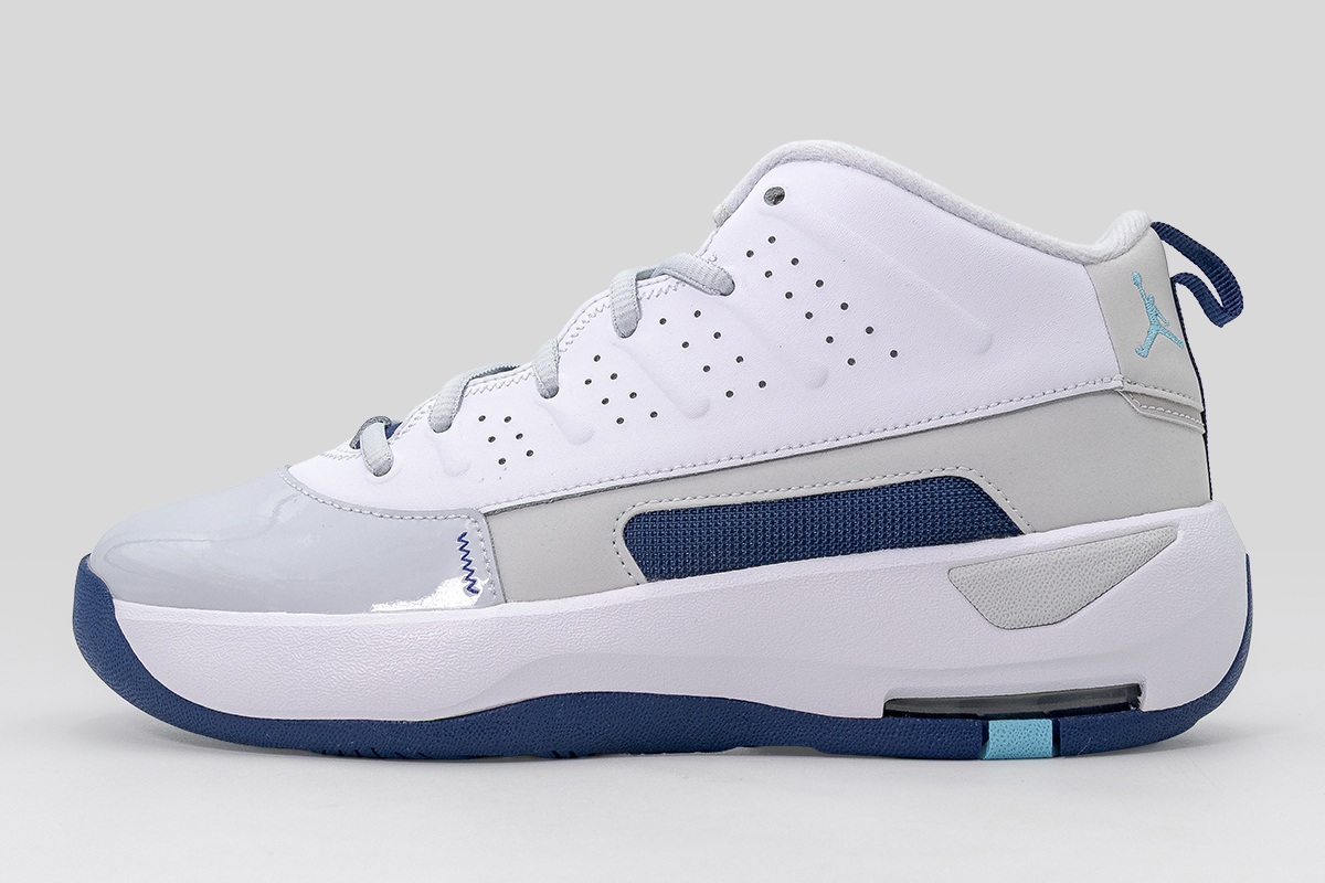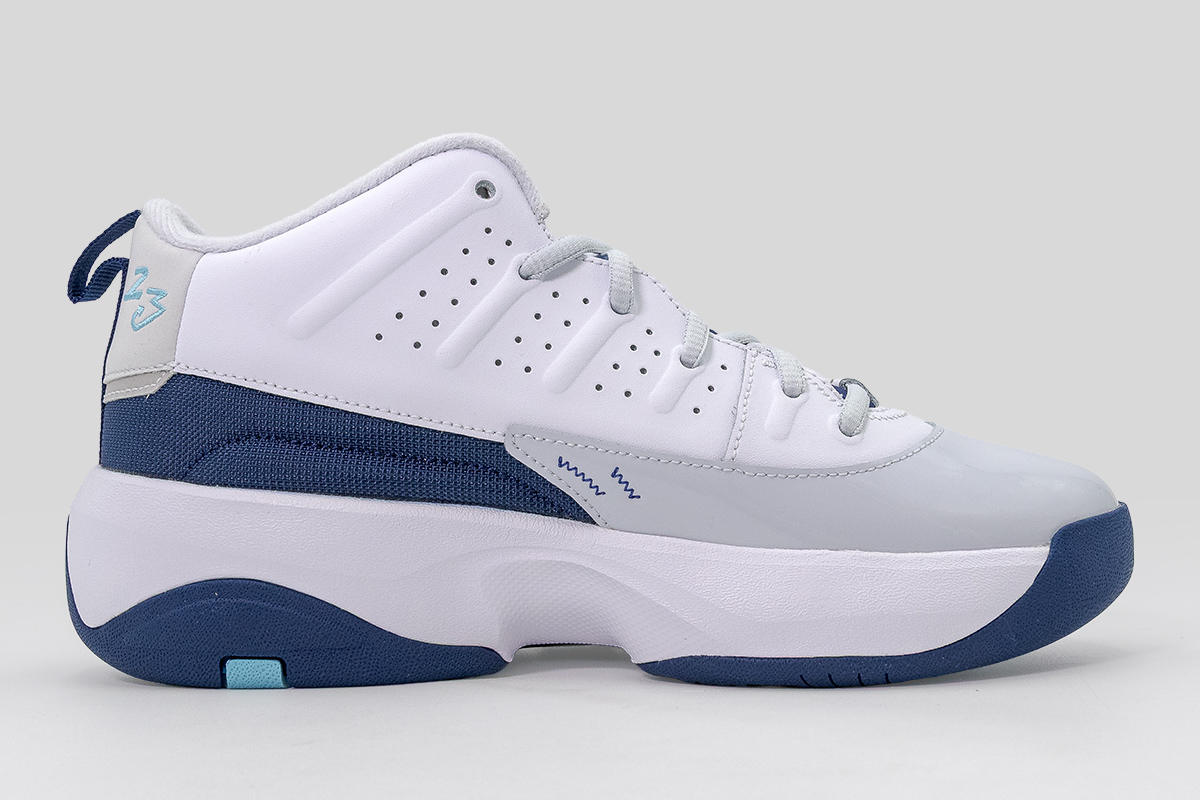 Οι κυματιστές γραμμές κοντά στα κορδόνια παραπέμπουν στο Air Jordan 10, ενώ οι ραβδώσεις στα πλαϊνά και οι γυαλιστερές λεπτομέρειες από λουστρίνι αποτίουν φόρο τιμής στο Air Jordan 11, δημιουργώντας ένα ξεχωριστό αποτέλεσμα με έντονο χαρακτήρα.