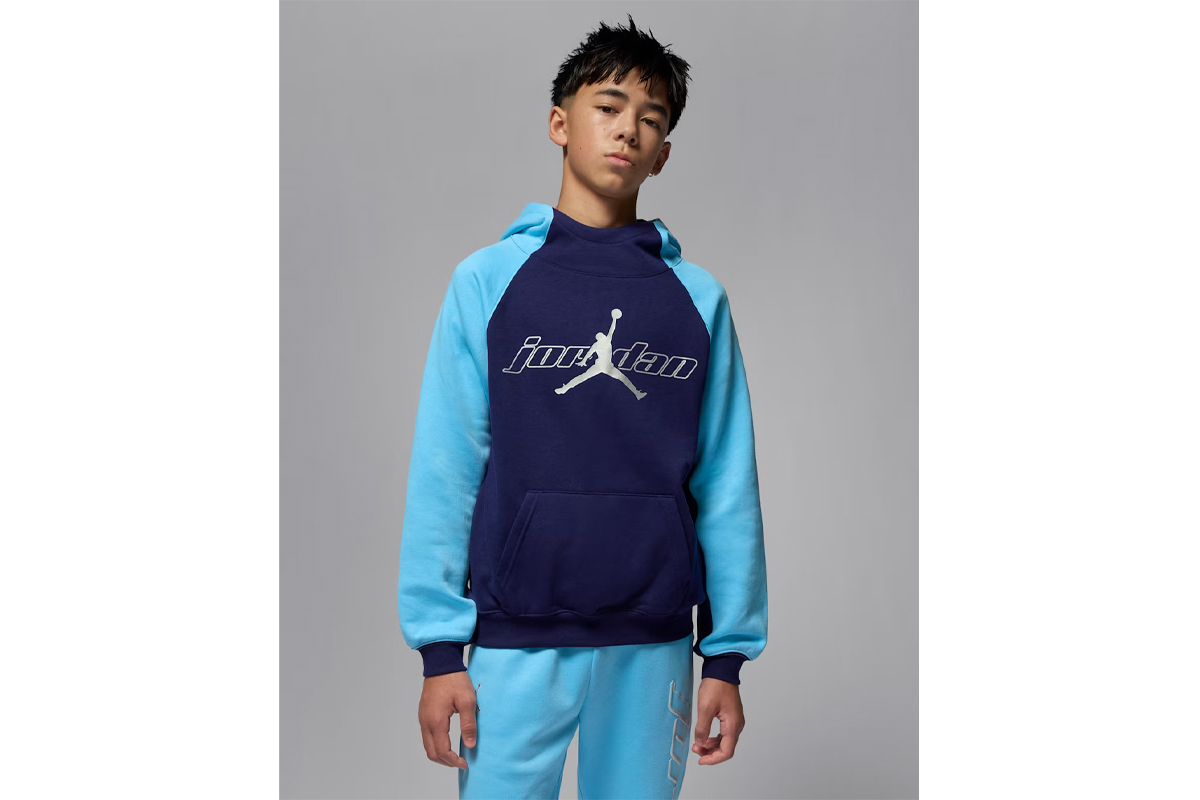 Ανανέωσε τη γκαρνταρόμπα του παιδιού σου με το Jordan παιδικό φούτερ με κουκούλα σε μπλε σκούρο, γαλάζιο και ασημί χρώμα για καθημερινή χρήση σε όλες τις συνθήκες.