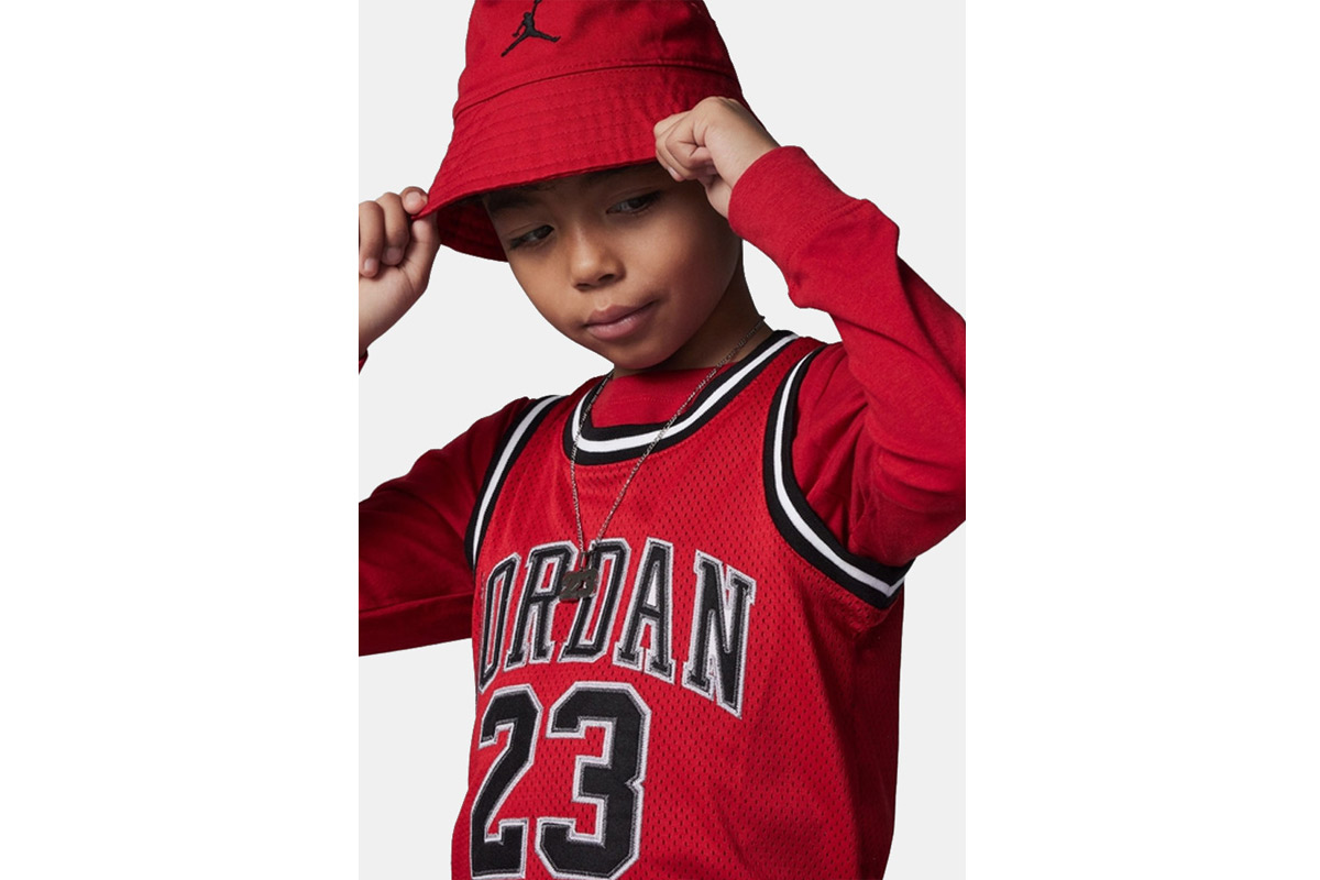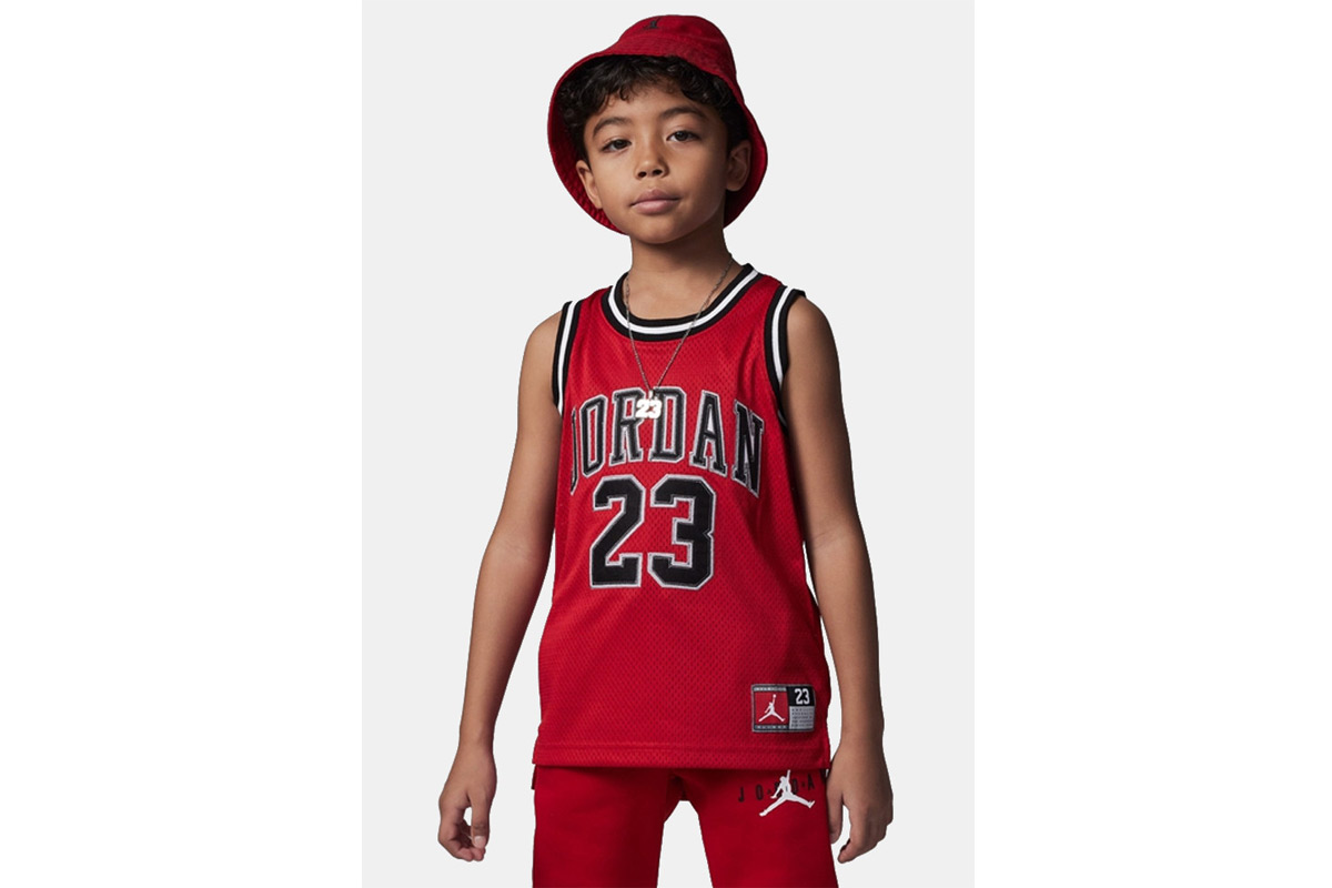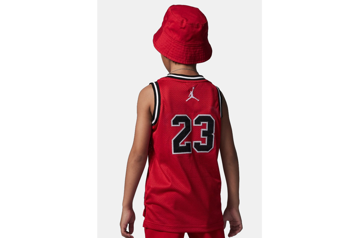 Πρόσθεσε στην αθλητική γκαρνταρόμπα του παιδιού σου την μπασκετική φανέλαJordan 23 για να κυριαρχεί στο παρκέ.