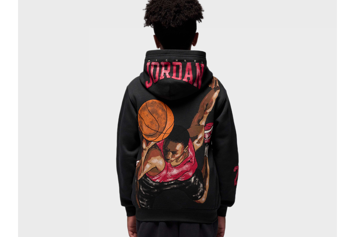 Οι rib μανσέτες και το rib τελείωμα εξασφαλίζουν σταθερή εφαρμογή και διατηρούν τη θερμότητα, ενώ η εντυπωσιακή στάμπα με τον Michael Jordan μπροστά και στην πλάτη προσθέτει street-style χαρακτήρα που ξεχωρίζει.