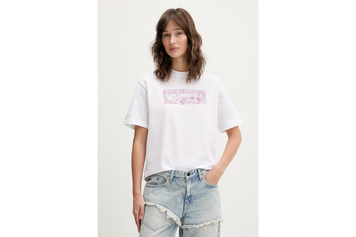NEW IN! Karl Lagerfeld Regular Fit Floral Logo T-Shirt Γυναικείο (B2W17071 100)