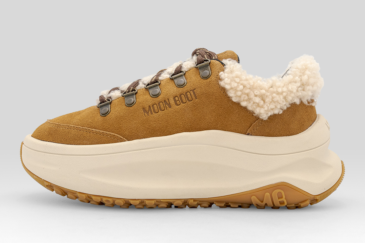 Οι μεταλλικές θηλιές, εμπνευσμένες από τα κλασικά παπούτσια πεζοπορίας, εξασφαλίζουν ανθεκτικότητα και άνεση, ενώ το διακριτικό λογότυπο «MOON BOOT» τονίζει το premium χαρακτήρα της μάρκας.