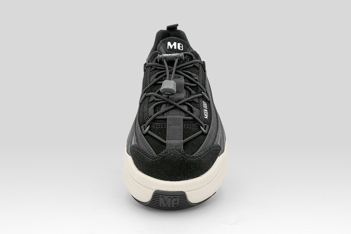 Τα διασταυρωμένα σωληνωτά κορδόνια με μεταλλικές θηλιές εξασφαλίζουν τέλεια εφαρμογή, ενώ το ανάγλυφο λογότυπο στη σόλα υπογραμμίζει την premium υπογραφή της Moon Boot.