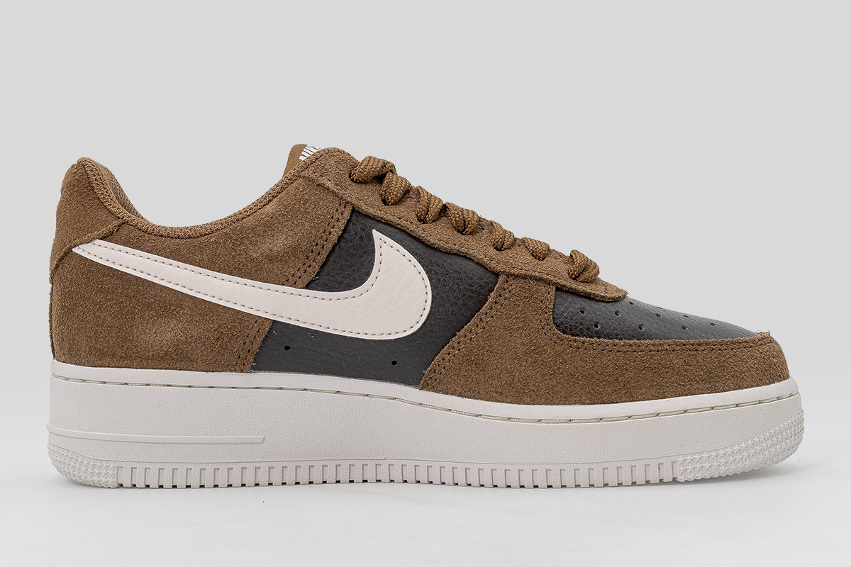 Απόλαυσε κλασικό στυλ και άνεση με τα Nike Air Force 1 '07 sneakers σε καφέ και λευκό χρώμα, ένα παπούτσι που έχει αγαπηθεί για την ανθεκτικότητα και την εμβληματική του εμφάνιση.