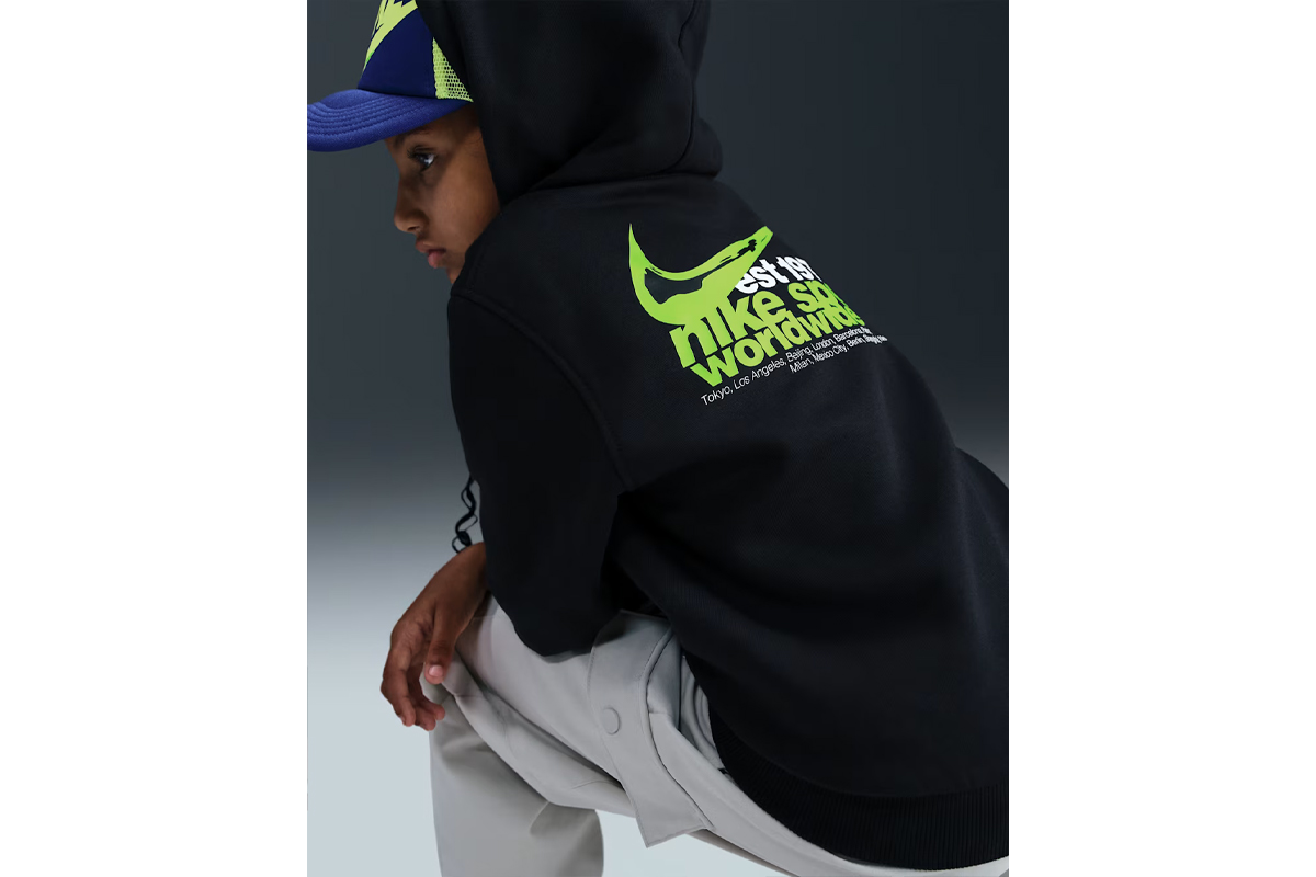 Αυτό το Nike hoodie είναι κατασκευασμένο από ελαφρύ fleece ύφασμα, με λεία εξωτερική επιφάνεια και βουρτσισμένο εσωτερικό για να παραμένει το παιδί ζεστό στη διάρκεια της ημέρας.