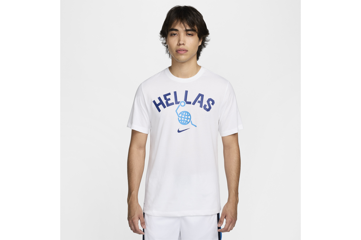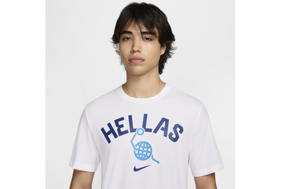 Αυτό το ανδρικό κοντομάνικο μπλουζάκι διαθέτει γραφικό τύπωμα Hellas στο στήθος και το λογότυπο Nike για να υποστηρίζεις την Ελλάδα με την αυθεντική υπογραφή του brand.