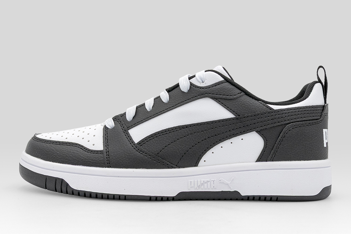 Τα Puma Rebound V6 Low sneakersσυνδυάζουν μοντέρνο στυλ και πρακτικότητα, εμπνευσμένα από τη μπασκετική κουλτούρα των '80s.