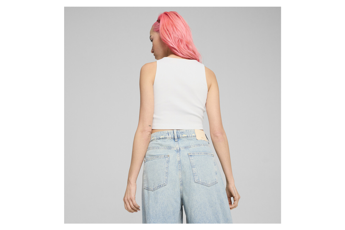 Το Puma classics Ribbed Crop Top αμάνικο μπλουζάκι είναι σχεδιασμένογια γυναίκες που αγαπούν τη δραστηριότητα, το fitness και την άνεση.