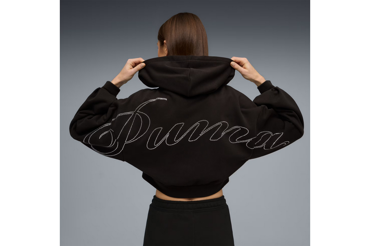 Puma Ess Graphic Bedazzled Γυναικεία Ζακέτα με Κουκούλα Μαύρη