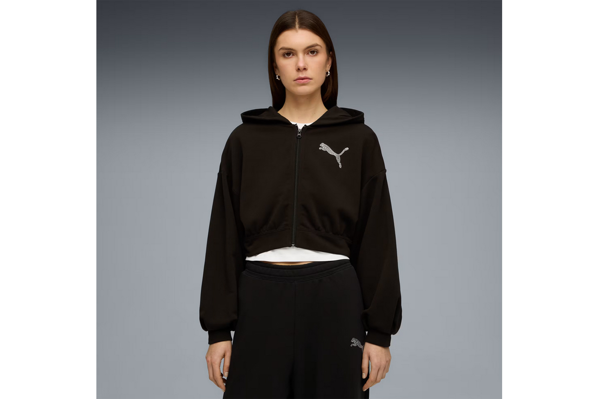 Ανακάλυψε την τέλεια ισορροπία ανάμεσα σε στυλ και άνεση με τη Puma Ess Graphic Bedazzled γυναικεία ζακέτα με κουκούλα σε μαύρο χρώμα.