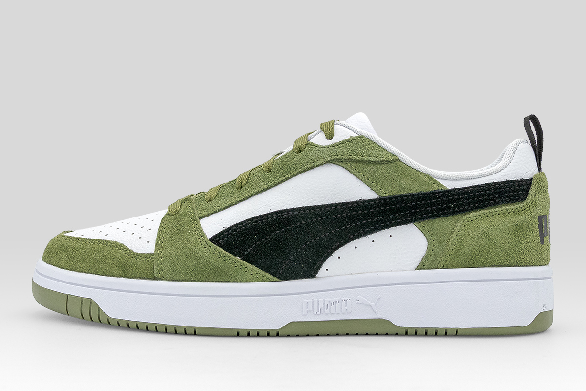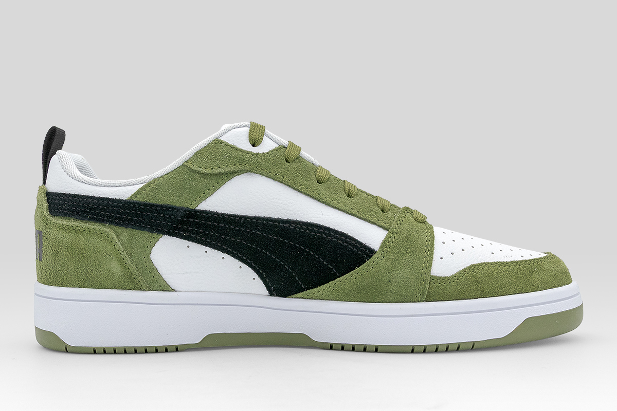 Απόλαυσε καθημερινή άνεση με μπασκετικό στυλ στα πόδια σου με τα Puma Rebound V6 Low ανδρικά sneakers σε λαδί, μαύρο και λευκό χρώμα.