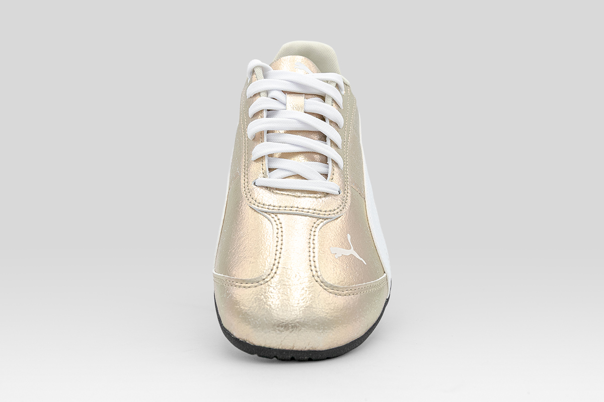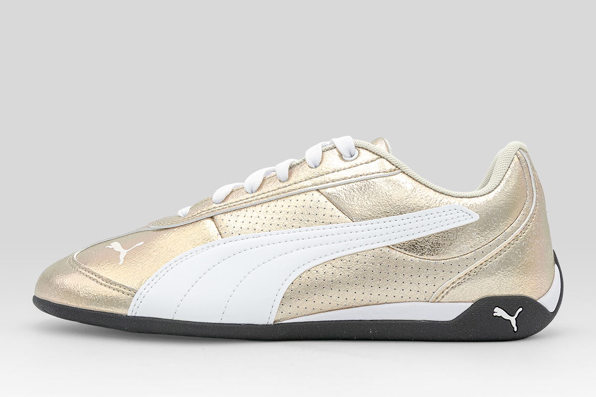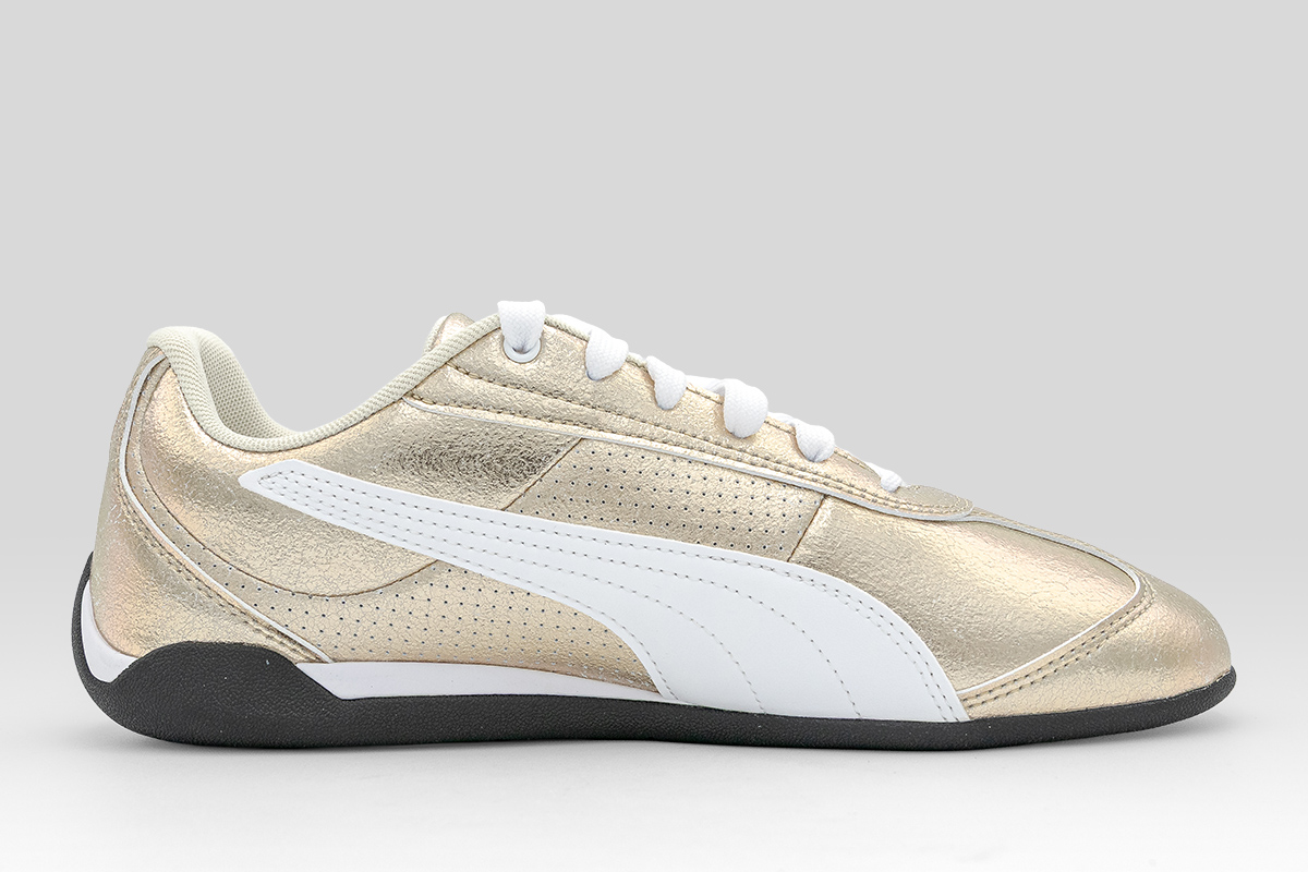 Αναβάθμισε το street style σου με τα Puma Replicatch Metallic Whisper sneakers σε χρυσό και λευκό χρώμα, εμπνευσμένα από τον μηχανοκίνητο αθλητισμό και τη δυναμική κουλτούρα του δρόμου.