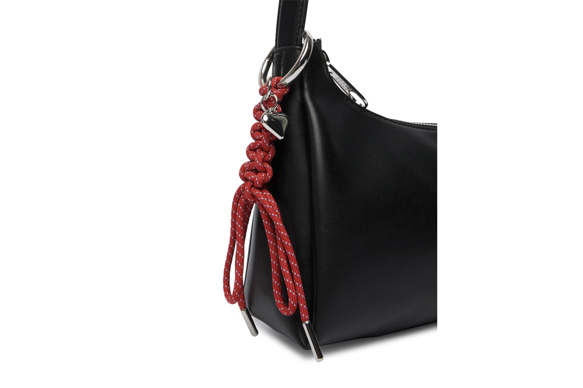 Η minimal αισθητική της συμπληρώνεται από ένα παιχνιδιάρικο γούρι με πλεγμένο σχοινί και καρδιά, προσθέτοντας προσωπικότητα σε κάθε σου εμφάνιση.