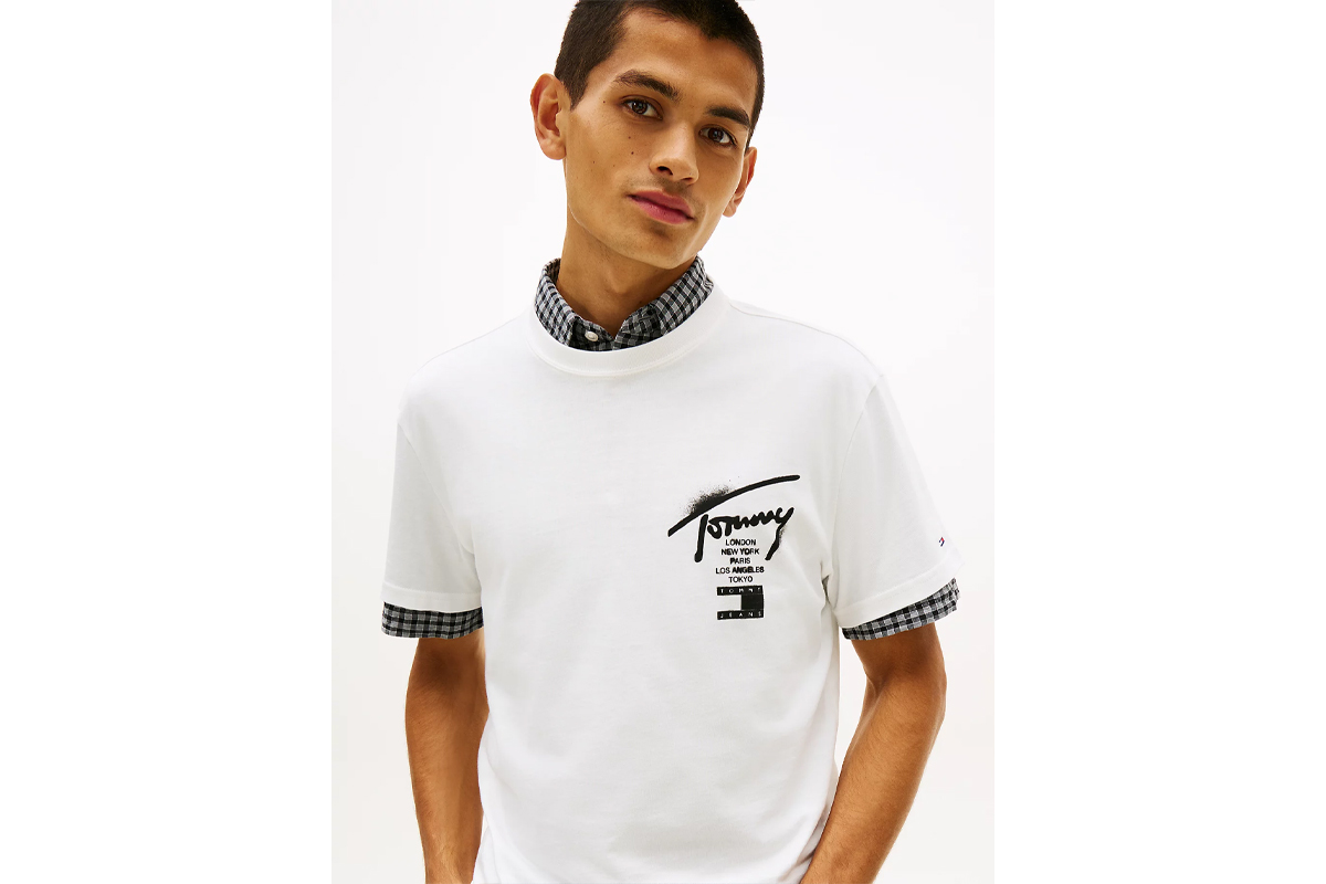 Οι Tommy στάμπες στο στήθος και στην πλάτη προσθέτουν signature λεπτομέρεια και μοντέρνα αισθητική, δημιουργώντας ένα T-shirt που ξεχωρίζει σε κάθε outfit.