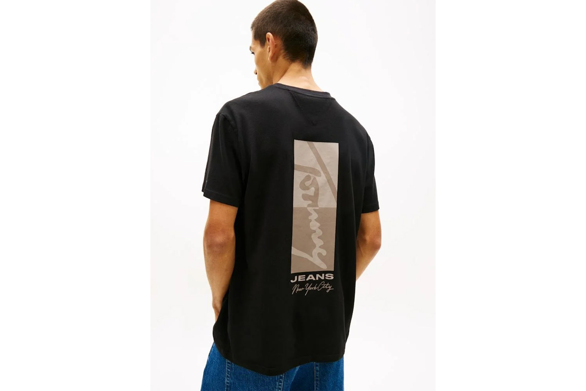 Ανακάλυψε το Tommy Jeans Regular Sign Block ανδρικό κοντομάνικο T-Shirtσε μαύρο χρώμα και αναβάθμισε το καθημερινό σου στυλ με ένα κομψό και άνετο κομμάτι που συνδυάζει premium λεπτομέρειες και μίνιμαλ design.