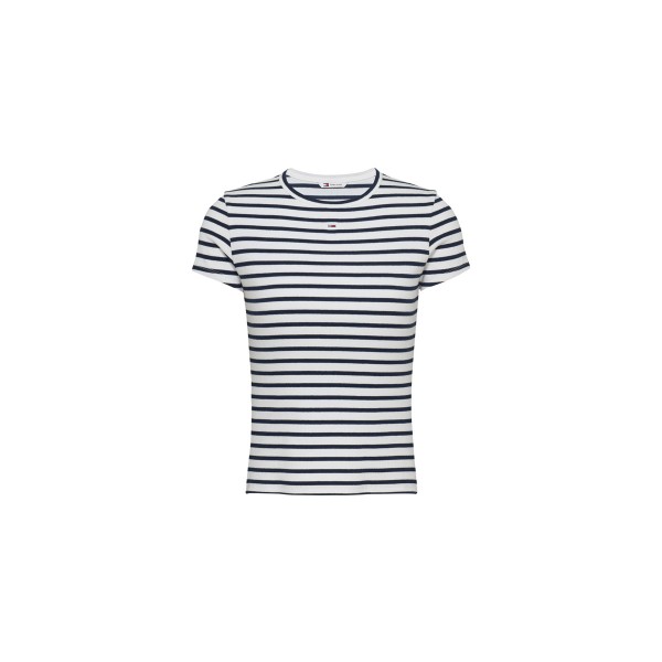 Tommy Jeans Slim Essential Rib Γυναικείο Κοντομάνικο T-Shirt Λευκό