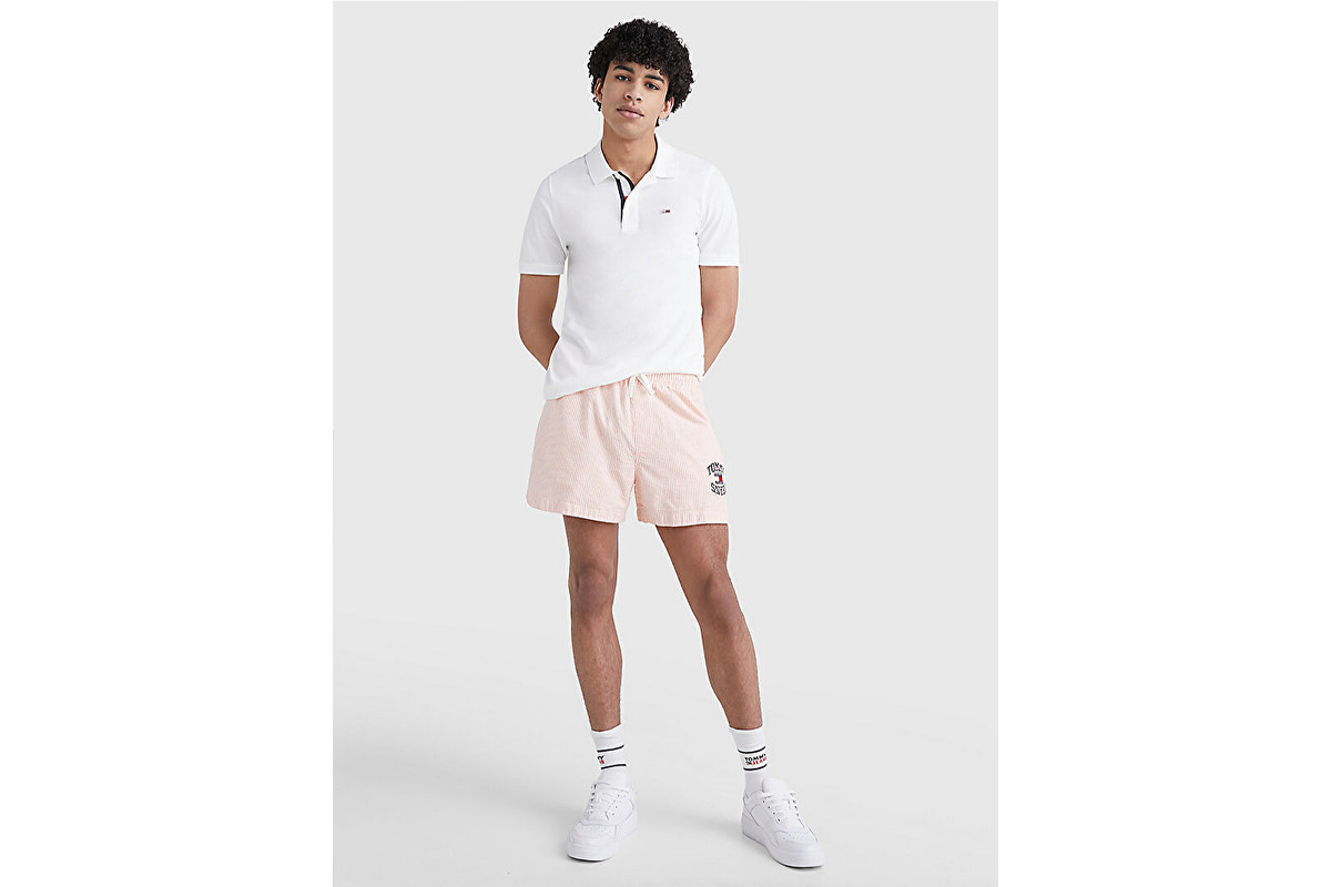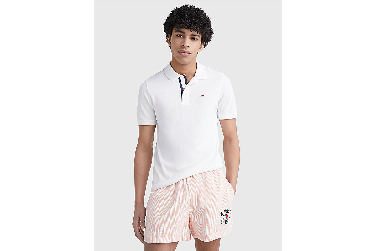 Tommy Jeans Ανδρική Κοντομάνικη Polo Μπλούζα Λευκή