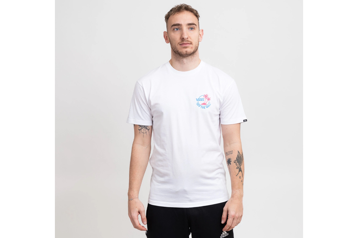 Το Vans Classic Mini Dual Palm 2 ανδρικό κοντομάνικο T-Shirt σε λευκό χρώμα αντιπροσωπεύει την ανανεωμένη και κομψή προσέγγιση στο στυλ.