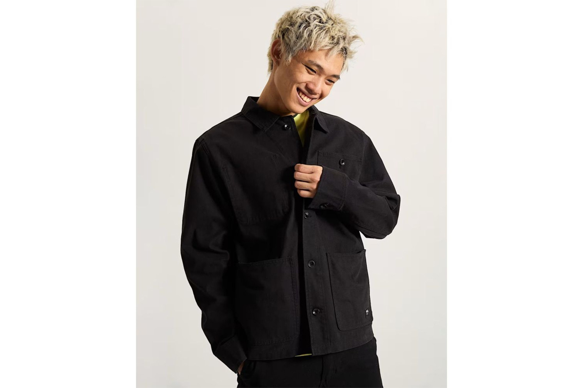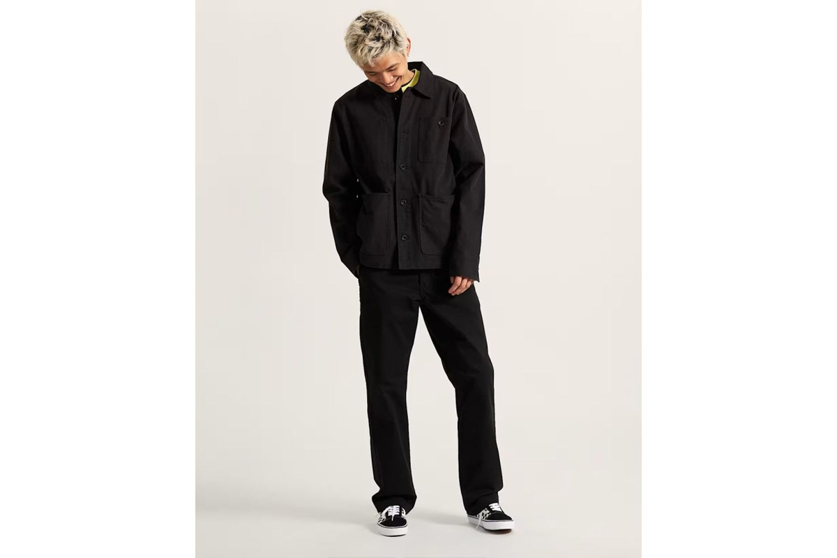 Το Vans Drill Chore Canvas jacket σε μαύρο χρώμα είναι ένα κομμάτι που συνδυάζει τη λειτουργικότητα με το αυθεντικό streetwear ύφος της Vans.