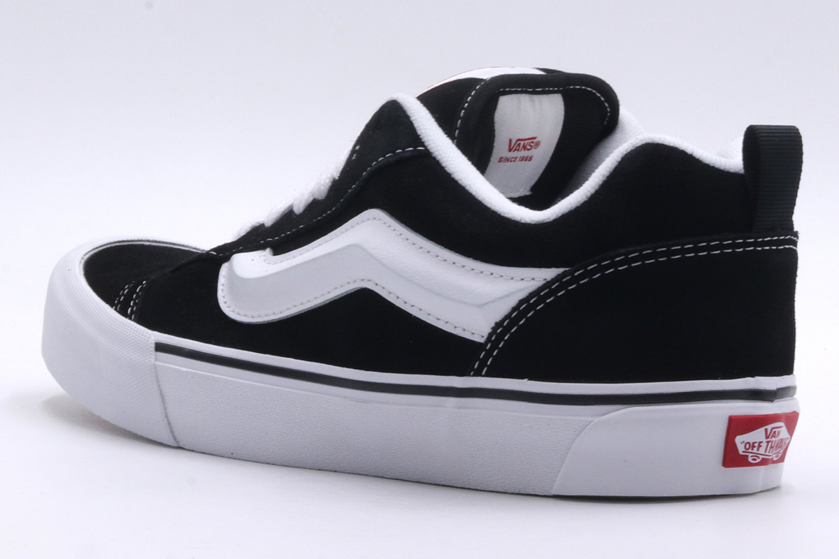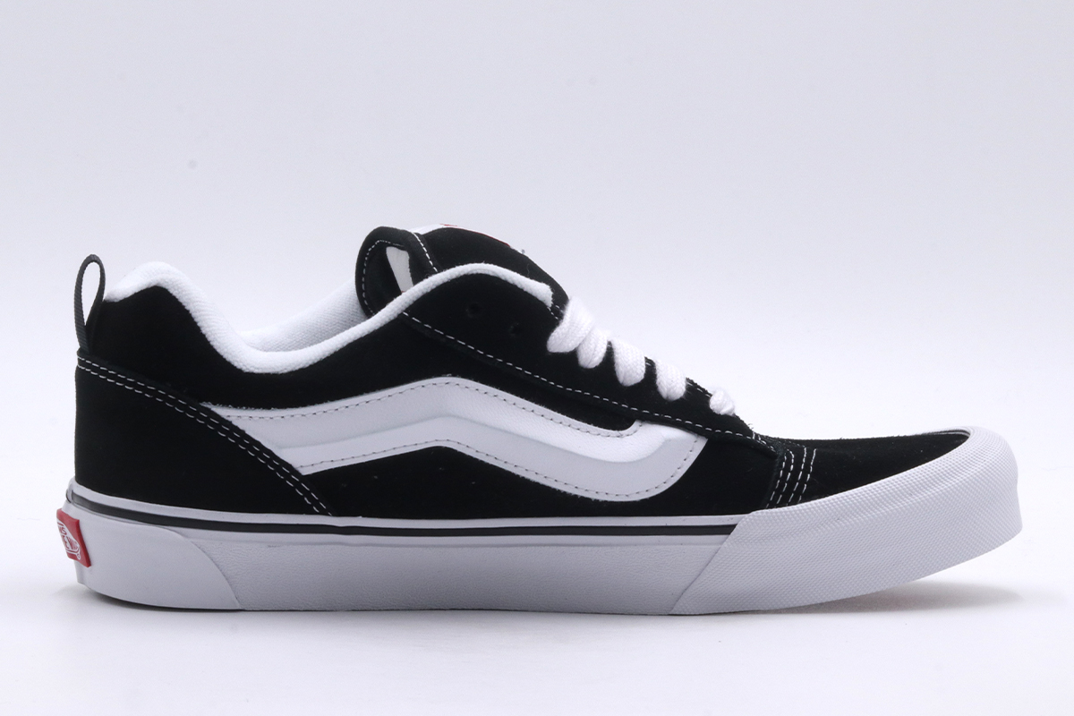 Το Knu Skool είναι ένα μοντέλο από τη δεκαετία του '90, όταν τα παπούτσια σκέιτ ήταν πολύ φουσκωτά. Κατασκευασμένο από ανθεκτικό σουέτ, αυτή η σιλουέτα χαμηλού ύψους διαθέτει μια μεγάλη φουσκωτή γλώσσα και κολάρο στον αστράγαλο, δίνοντάς του μια υπερβολική εμφάνιση που παραπέμπει στο αρχικό Old Skool.