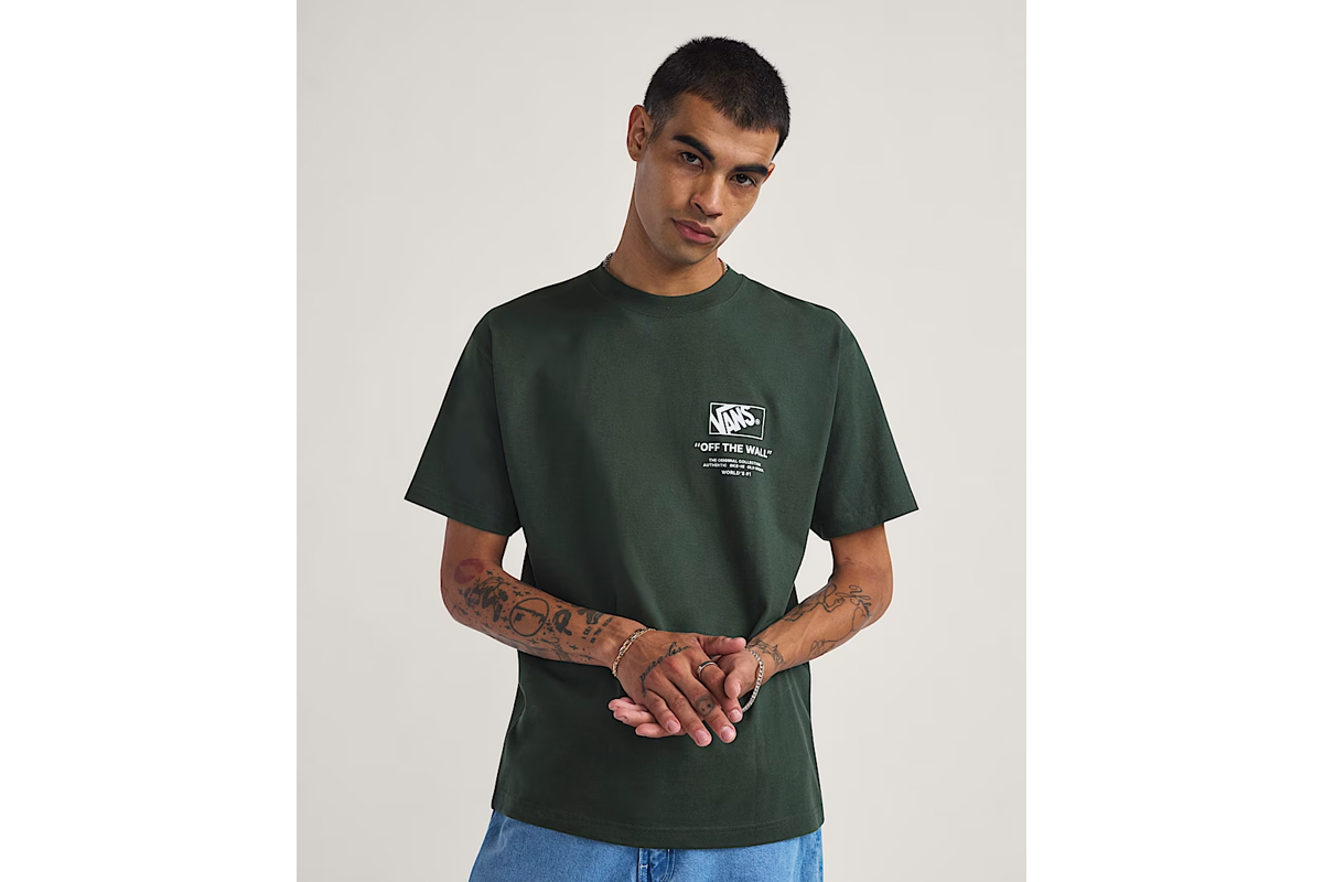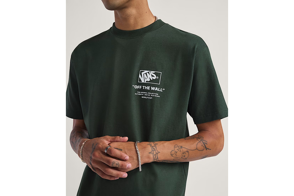 Αυτό το Vans μπλουζάκι γίνεται το απόλυτο κομμάτι για τις casual εμφανίσεις σου, φέρνοντας τη φιλοσοφία "Off The Wall" στο καθημερινό σου look.